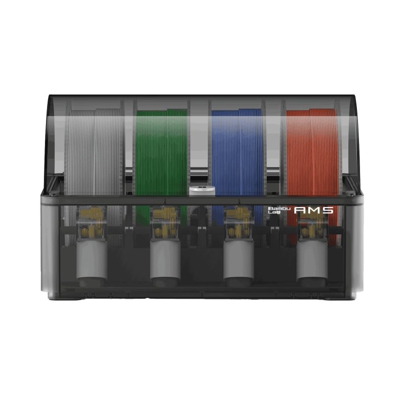 AMS ļauj printerim automātiski pārslēgties starp kvēldiegiem vienas drukāšanas laikā, nodrošinot krāsainus, sarežģītus un vairāku materiālu modeļus ar minimālu piepūli. Tā viedā sistēma izseko kvēldiega statusu, novērtē atlikušo daudzumu un novērš kļūdas, piemēram, sapīšanos vai lūzumus.