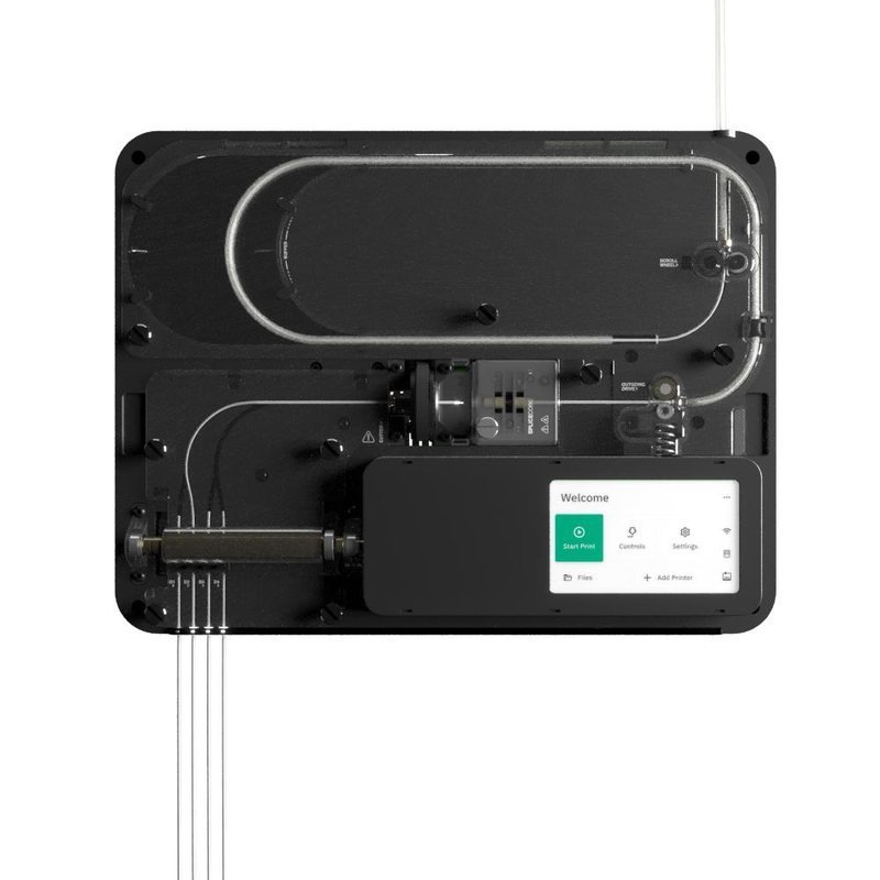 Palette 3 un 3 PRO izmanto 4–8 veidu kvēldiegus un apvieno tos vienā kvēldiegā. Šī kvēldiega pēc tam tiek padota printerim, ļaujot printerim ar vienu ekstrūderi izveidot vairāku kvēldiegu izdrukas!- 1. Piedziņa:Palette 3 pilnībā metāla piedziņas sistēmas precīzi kontrolē kvēldiegu, lai nodrošinātu, ka no katras ieejas tiek padots pareizais garums.