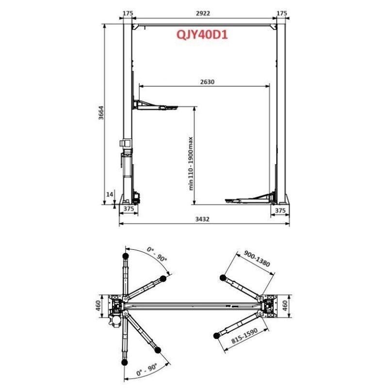 Priekšējo taisno sviru garums 900–1380 mm (2 līmeņi)