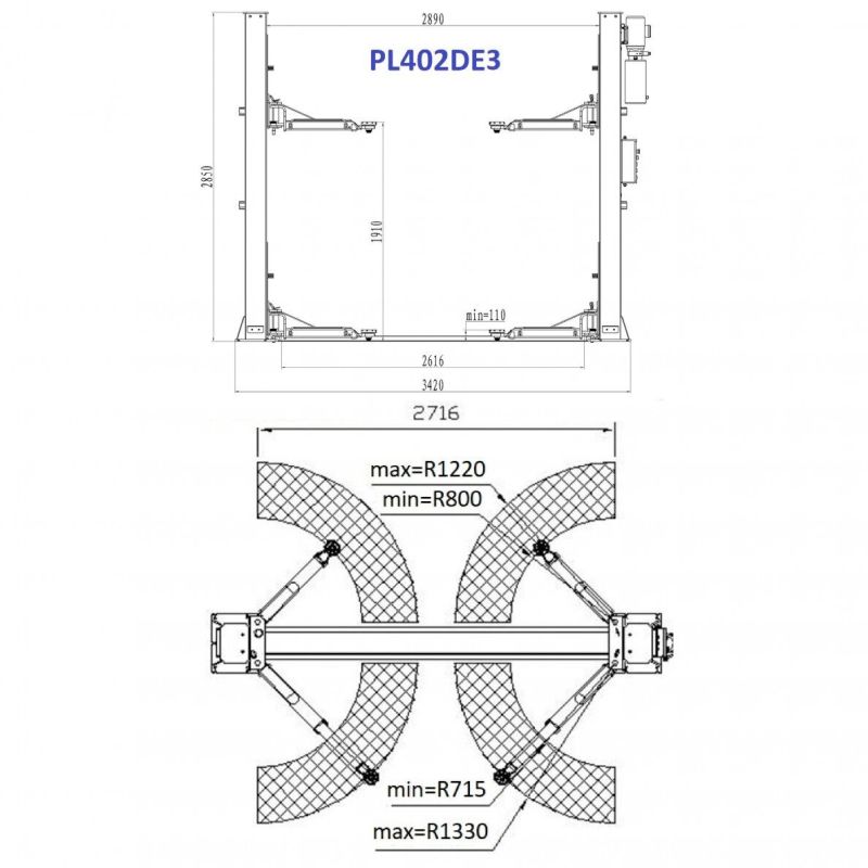 | Pacelšanas augstums (+ paliktņu pagarinājums) | 1910 mm |