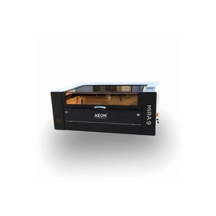 MIRA9 ir lāzergravēšanas un griešanas CNC iekārta rūpnieciskai lietošanai, kas viegli iekļaujas uz galda. Tā ir ideāli piemērota tiem, kas nevēlas tērēt daudz vietas lielai CNC mašīnai un vēlas lielisku rezultātu dažādiem gravēšanas un lāzergriešanas darbiem. Lai gan mašīnas izmērs ir neliels, tā atbilst 1. klases lāzera drošības standartam, tās rāmis ir izgatavots no metāla, tāpēc tā ir pietiekami spēcīga, lai izturētu ikdienas lietošanu. Turklāt mašīna jau ir aprīkota ar dzesēšanu, dūmu ventilatoru un gaisa sūkni, tāpēc par šīm sistēmām nav nepieciešams rūpēties atsevišķi. Tā vēl vairāk palielina darba laukumu un aizstāj ūdens dzesēšanas sistēmu ar tvaika kompresoru, kas daudz ātrāk atdzesē sistēmu nepārtrauktai darbībai, ļaujot izmantot līdz 130 W lāzeru. Ir uzlabotas arī ventilācijas un dūmu nosūkšanas sistēmas, kas atvieglo un padara masveida ražošanu vieglāku un efektīvāku.