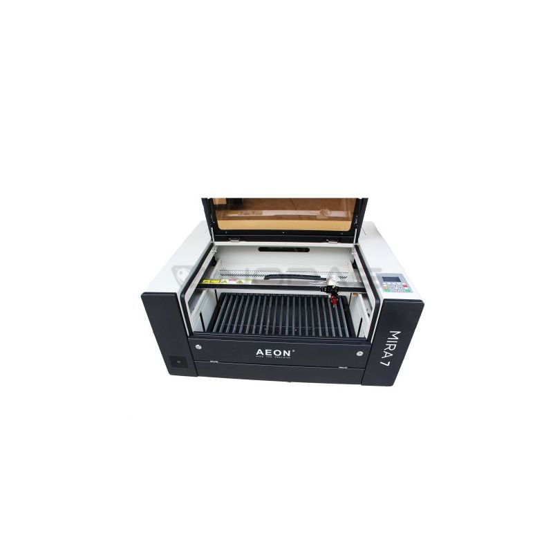 MIRA7 ir lāzergravēšanas un griešanas CNC iekārta profesionāliem lietotājiem, kas viegli iekļaujas uz galda. Tā ir ideāli piemērota tiem, kas nevēlas tērēt daudz vietas lielai CNC mašīnai un vēlas lielisku rezultātu dažādiem gravēšanas un lāzergriešanas darbiem. Lai gan mašīnas izmērs ir neliels, tā atbilst 1. klases lāzera drošības standartam, tās rāmis ir izgatavots no metāla, tāpēc tā ir pietiekami spēcīga, lai izturētu ikdienas lietošanu. Iekārta ir aprīkota arī ar ūdens dzesēšanu, dūmu ventilatoru un gaisa sūkni, tāpēc nav nepieciešams par šīm sistēmām rūpēties atsevišķi. Tai ir lielāka darba zona un pastiprināta ūdens dzesēšanas un dūmu nosūkšanas sistēma, tāpēc tā ir efektīvāka masveida ražošanas veikšanai.