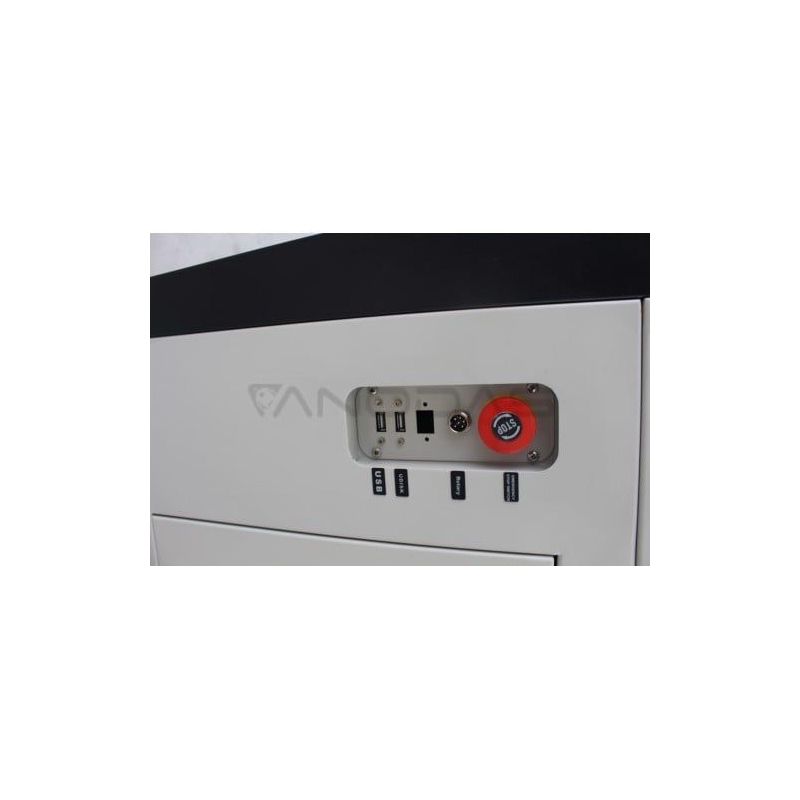 ● Lāzera jauda un tips: Lāzera jauda: 130 W RECI CO2 lāzers (iespējamās opcijas: 80 W/100 W/130 W/150 W CO2 / 30 W/40 W/50 W/60 W/60 W100 W RF lāzers).