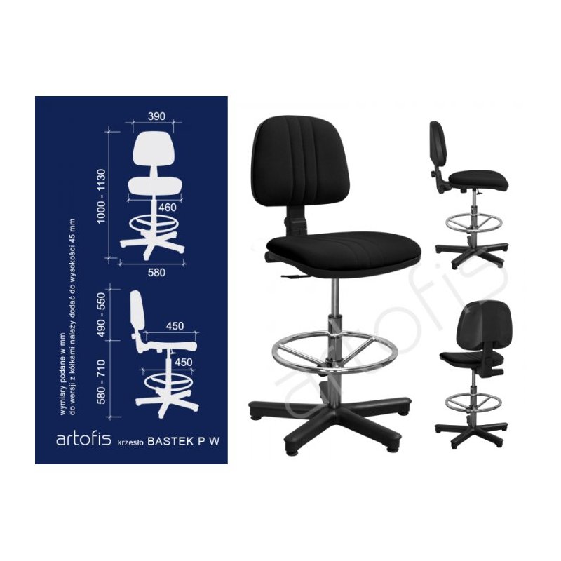 Šis grozāmais krēsls ir piemērots darbnīcām, kasēm un speciālistiem. Tā sēdeklim un atzveltnei ir biezākas nekā standarta putas, kas sašūtas trīs vertikālās līnijās (kontrastējoša diegu krāsa pieejama pēc pieprasījuma). CPT mehānisms ļauj regulēt atzveltnes slīpumu. Kāju balsts ir izgatavots no hromēta tērauda. Tērauda pamatne ar plastmasas paliktņiem ir aprīkota ar neskrāpējošiem slīdņiem. Šī krēsla polsterētās daļas ir izgatavotas no BASIC tkb-001 auduma (I auduma grupa).
