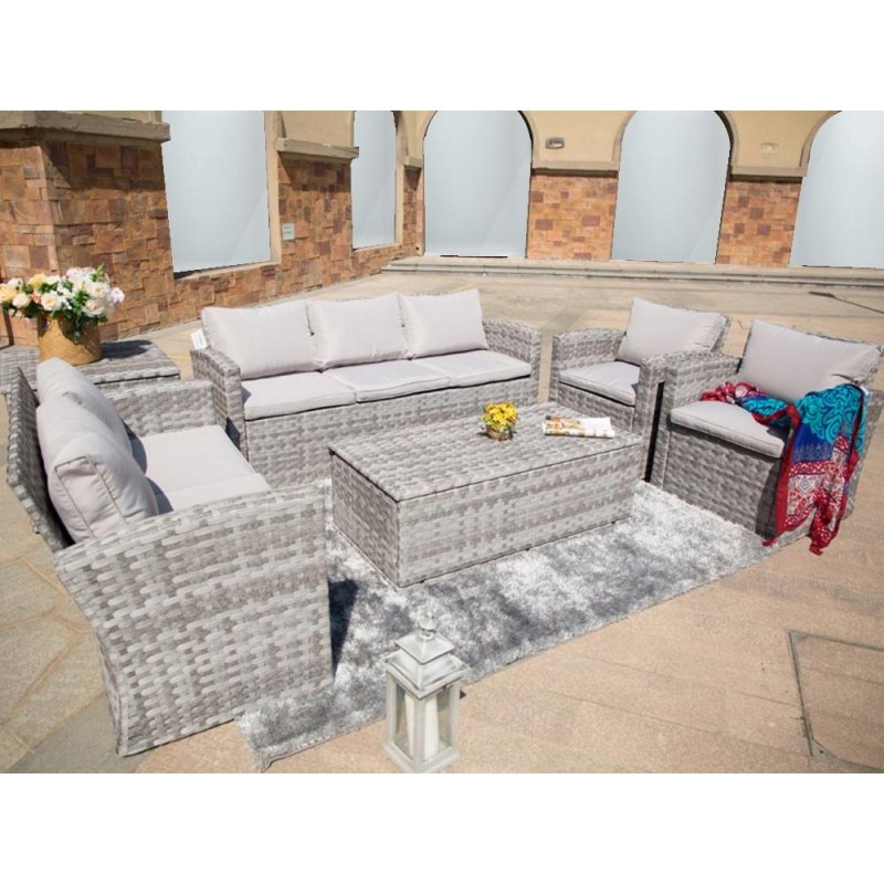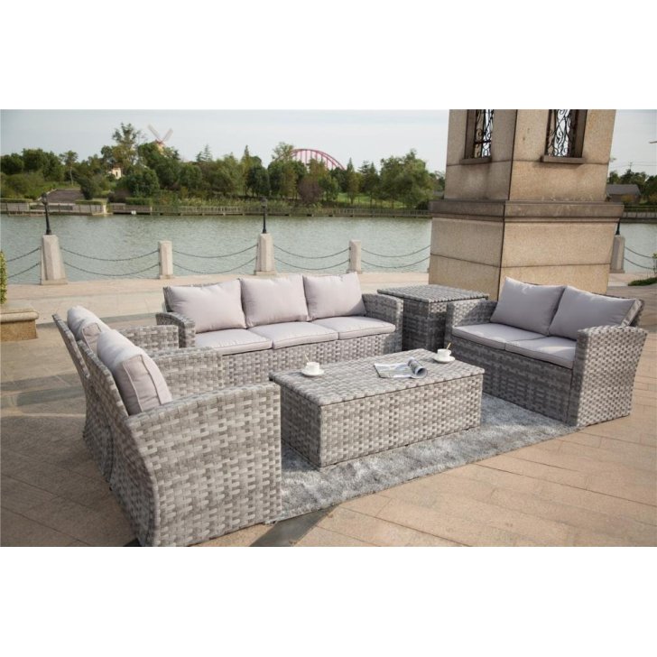 Sacramento atpūtas komplekts ar 7 sēdvietām, modernā rotangpalmas groza izskatā, izturīgs, UV un laikapstākļu izturīgs, polipropilēns, ieskaitot spilvenus, apm. 46 kg