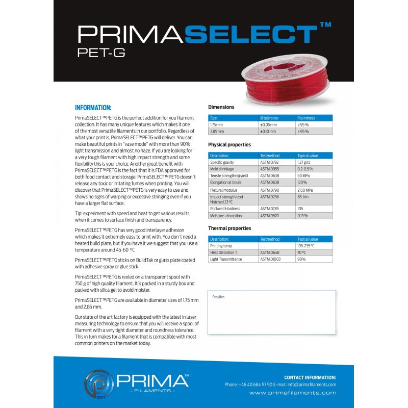 PrimaSelect PETG - 1.75mm - 750 g - Clear