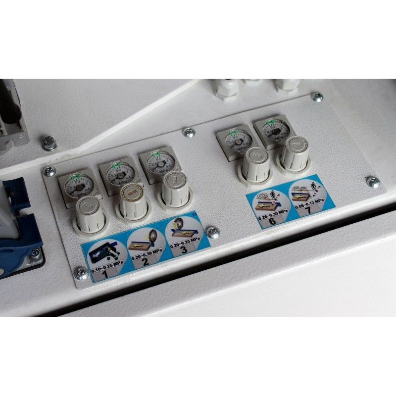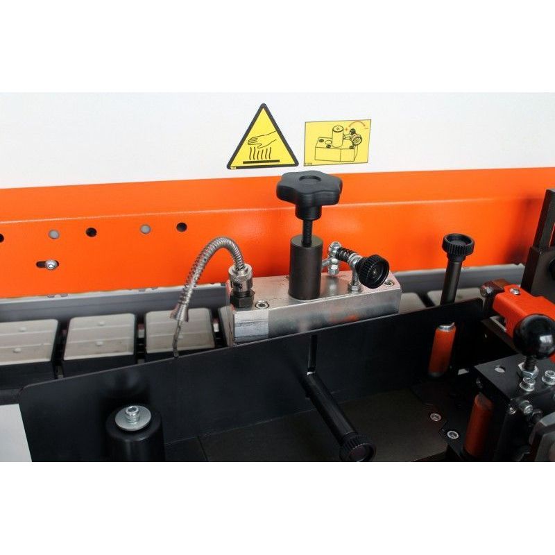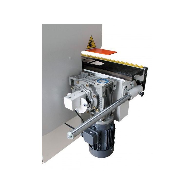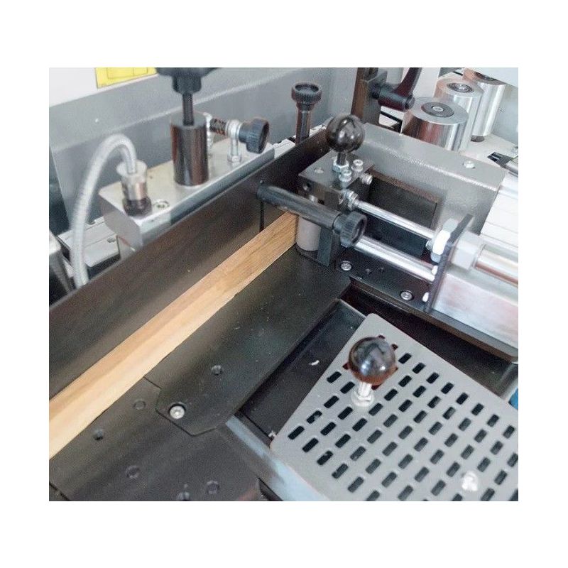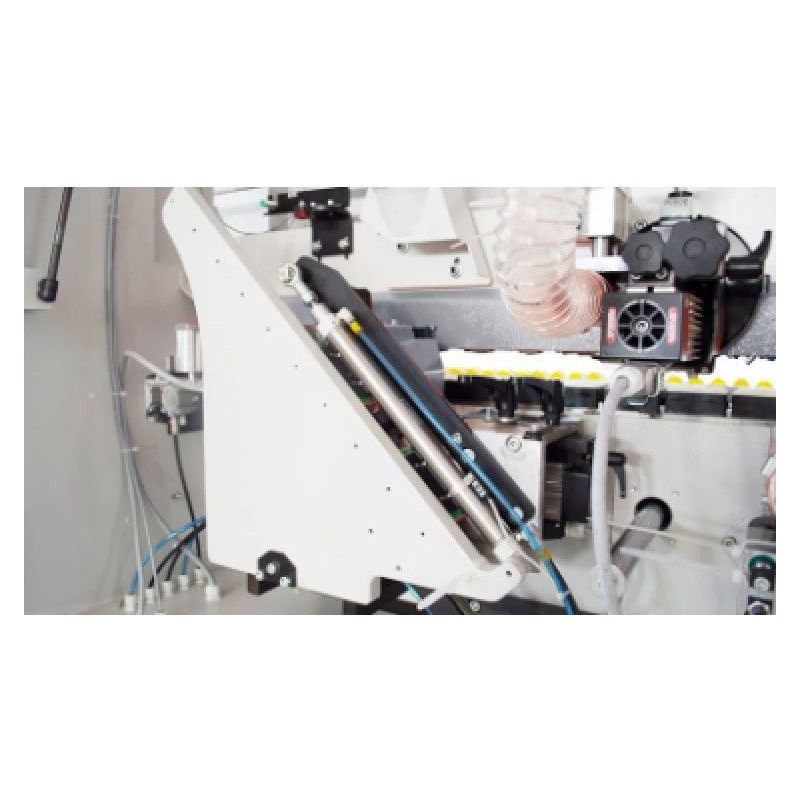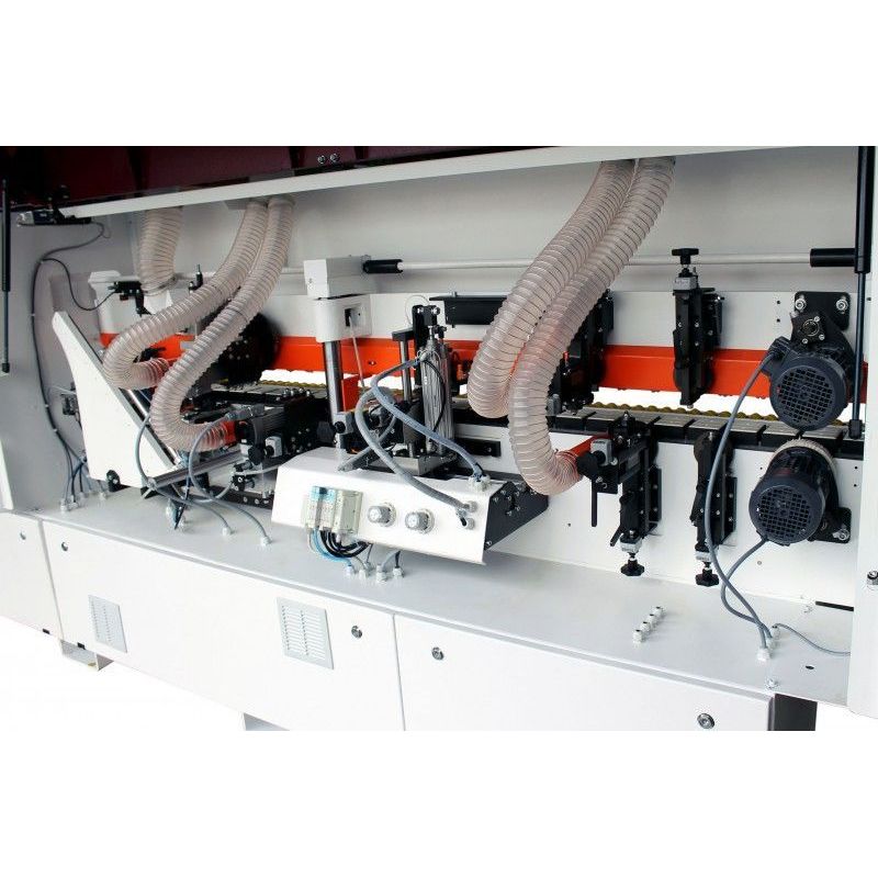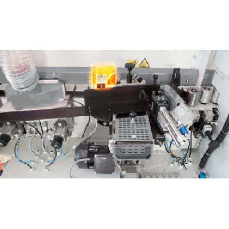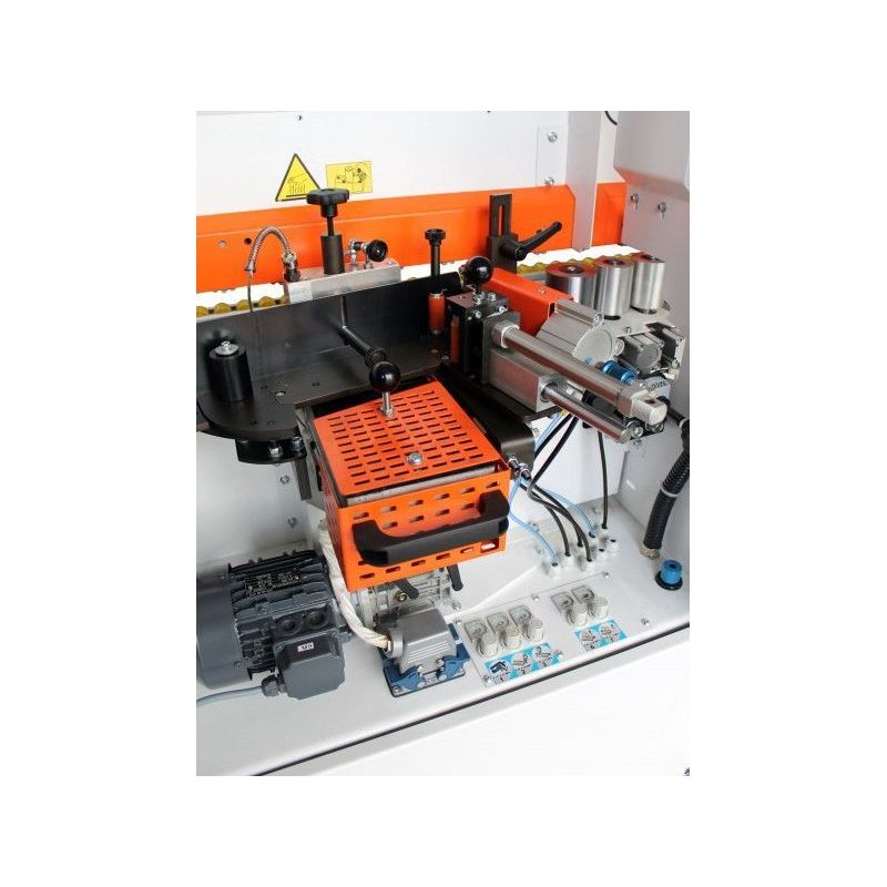 - Augšējais un apakšējais frēzēšanas bloks ar vertikālu un horizontālu regulēšanu uz diviem motoriem (uzstādīti uz lineāriem gultņiem) HF 200 Hz, 12 000 apgr./min un frēzēšanas galviņām 75, Z=4; 15, R2 vai R3 mm (pēc izvēles).