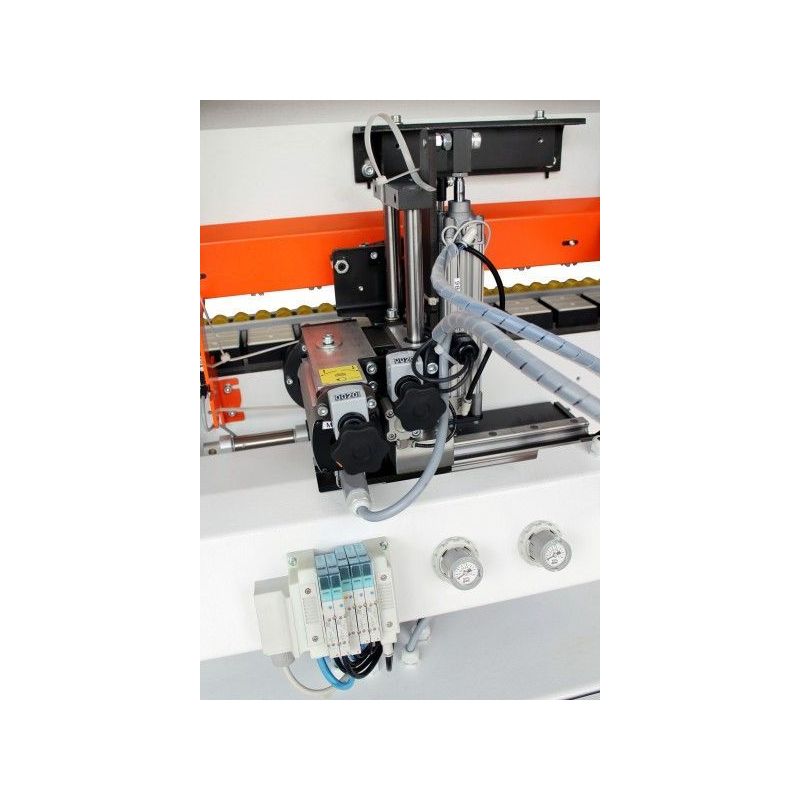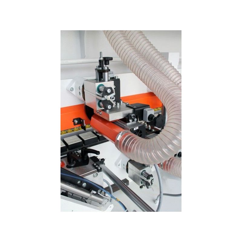 - 2 atsevišķi zāģi finiera sākuma un beigu apdares griešanai (110 fi x 32 fi Z=30 zobu), kas uzstādīti uz REXROT vadotnēm
