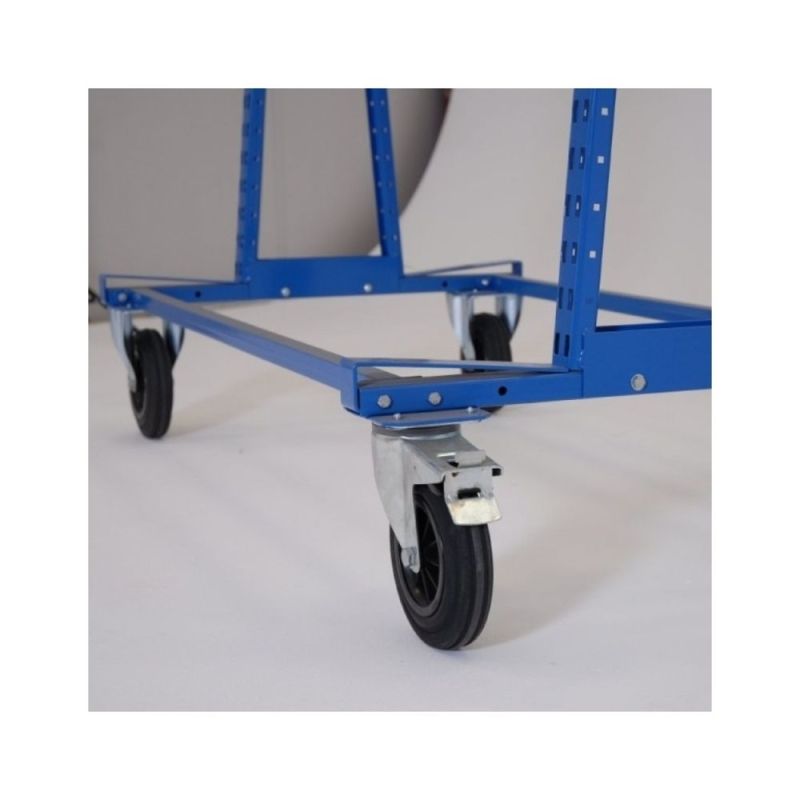 2 fiksētie + 2 grozāmie riteņi ar bloķēšanas ierīci Eiropas standarts EN 1757-3 (Rūpniecisko ratiņu drošība).