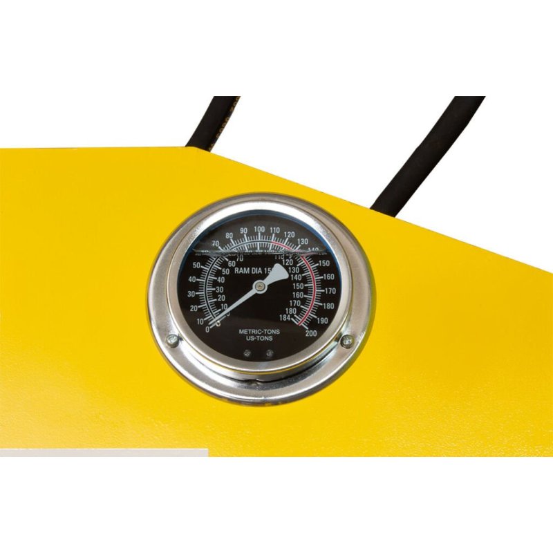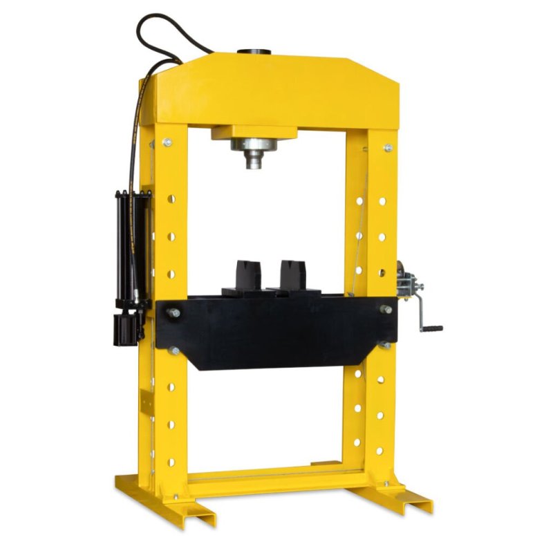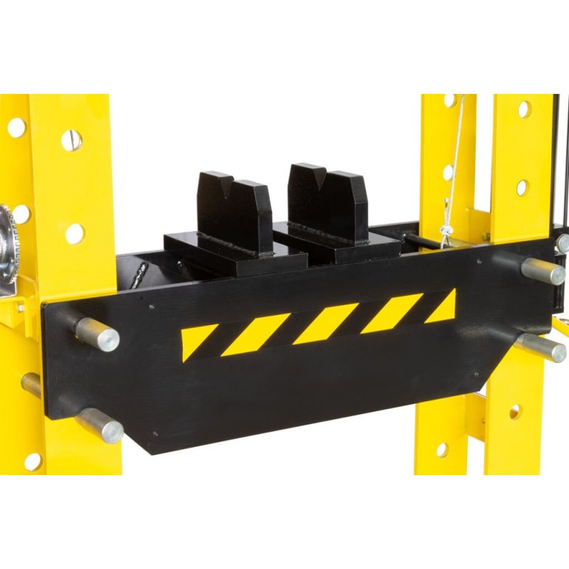 Ērtībai un drošībai visas preses ir aprīkotas ar glicerīna manometru, kas precīzi norāda darba spiedienu, un divām V-prizmām ar nobīdes fiksatoru, kas nodrošina stabilu detaļu atbalstu. Modeļos ar lielāku spiediena spēku (50, 75 un 100 tonnas) papildus ir izmantots kloķa mehānisms galda pacelšanai, kas atvieglo tā regulēšanu.