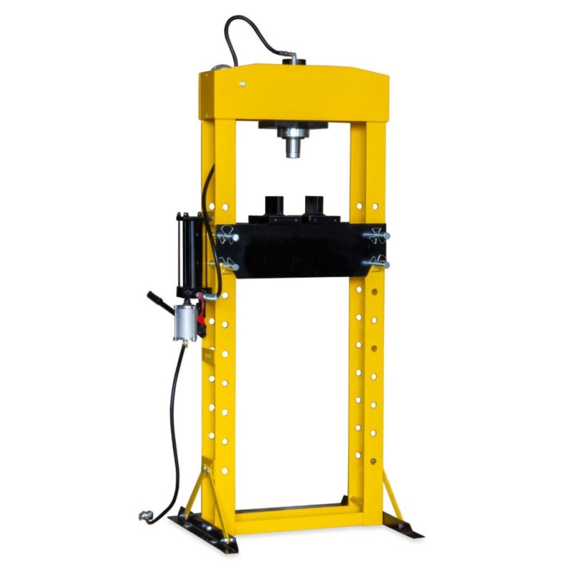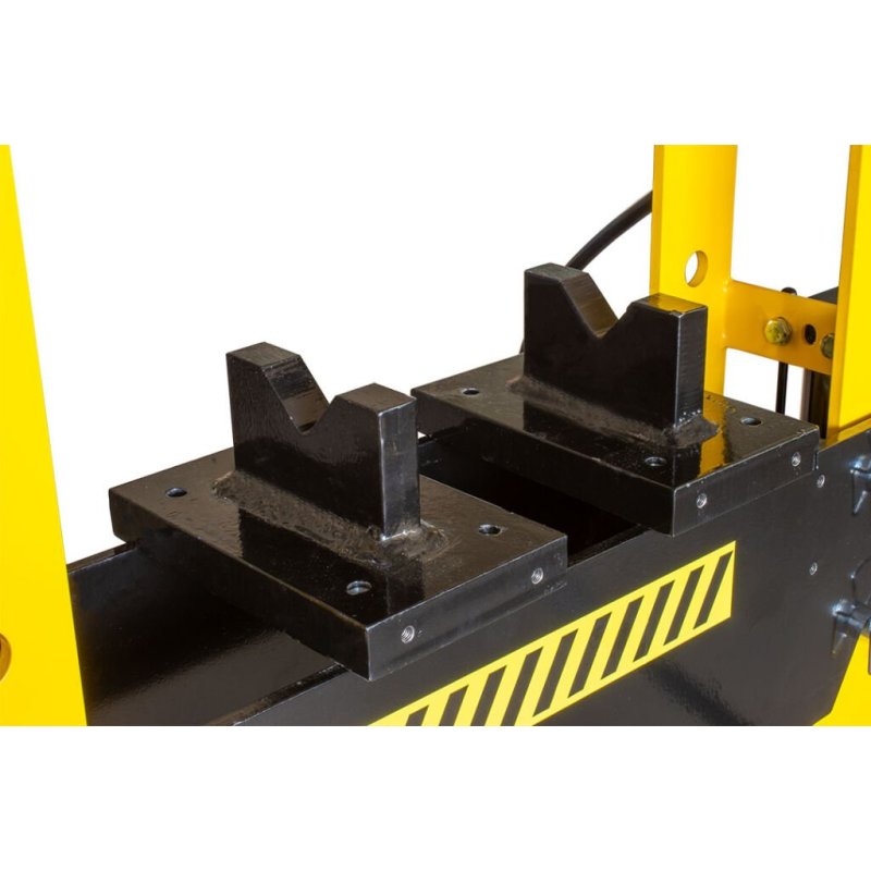 Ērtībai un drošībai visas preses ir aprīkotas ar glicerīna manometru, kas precīzi norāda darba spiedienu, un divām V-prizmām ar nobīdes fiksatoru, kas nodrošina stabilu detaļu atbalstu. Modeļos ar lielāku spiediena spēku (50, 75 un 100 tonnas) papildus ir izmantots kloķa mehānisms galda pacelšanai, kas atvieglo tā regulēšanu.