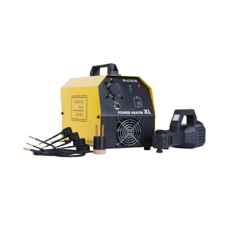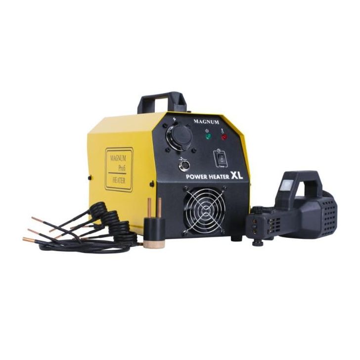 MAGNUM zīmola ierīce — POWER HEATER XL — ir paredzēta precīzai un ātrai izvirzītu elementu vai plakanu virsmu, piemēram, skrūvju, uzgriežņu, bultskrūvju, cauruļu, stikla, lokšņu utt., uzsildīšanai, kuru diametru vai virsmu ierobežo pieejamo darba uzgaļu veids un izmērs, kas paredzēti lietošanai ar ierīci. Indukcijas sildītājs aizstāj standarta sildīšanas metodes, izmantojot gāzes liesmu. Pateicoties tam, mēs aizsargājam zonu ap uzsildāmo elementu no: kušanas, piedegšanas utt.