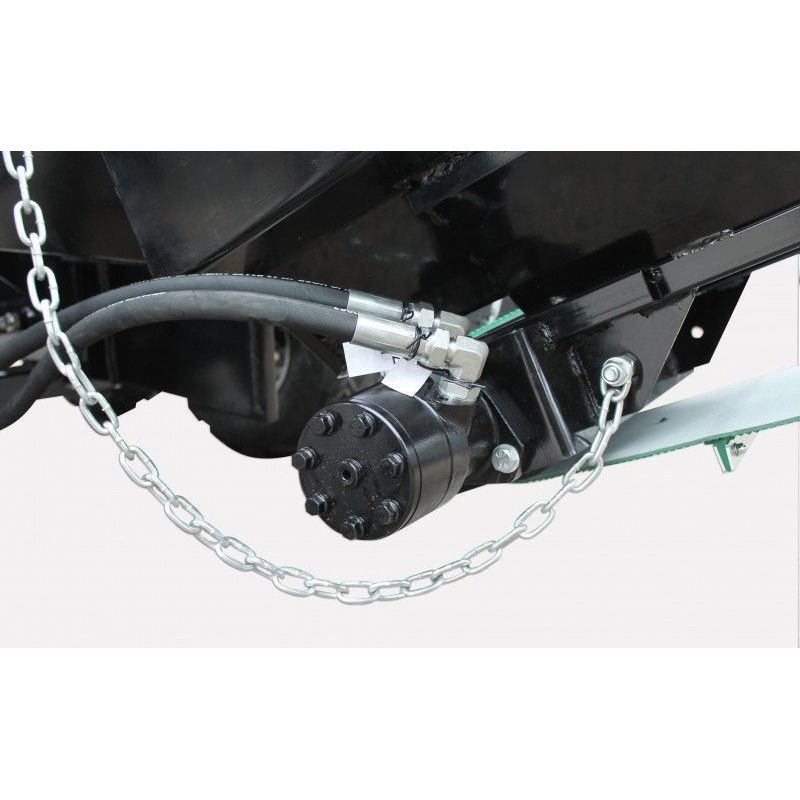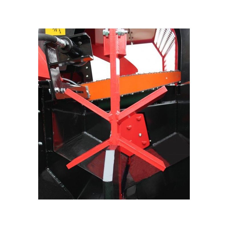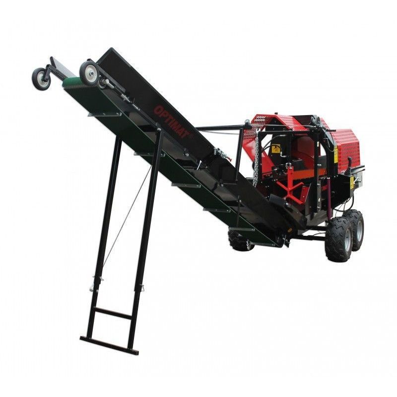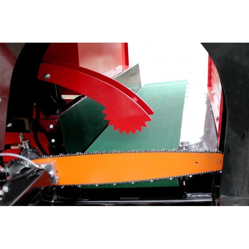 Zāģēšanas un skaldīšanas mašīna ir aprīkota ar 3,5 m garu konveijera lentu, ar kuru apstrādāto koksni var transportēt tieši uz piekabes.