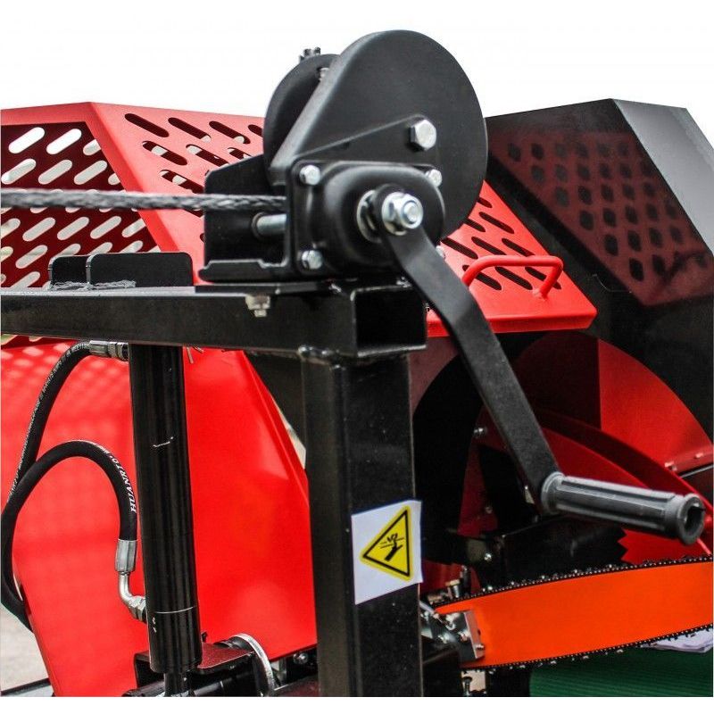 Mašīnai var izmantot dažādus papildu piederumus, piemēram, hidraulisko baļķu padevēju, ķīļus.