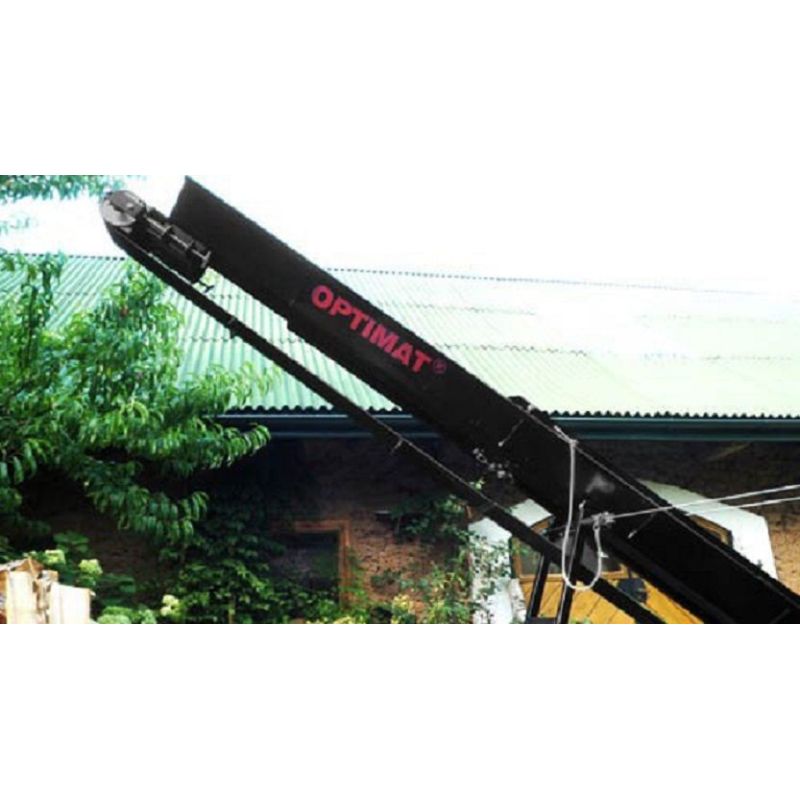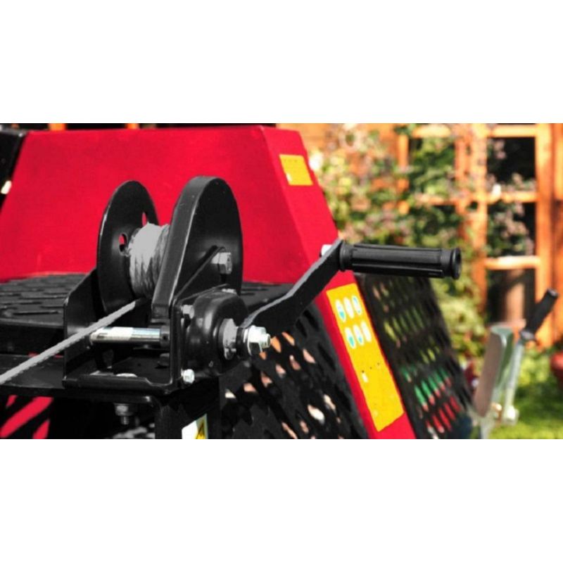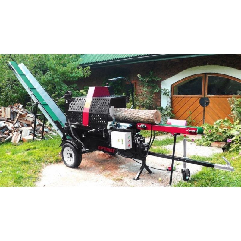 - Zāģēšanas un skaldīšanas mašīna ir aprīkota ar 3,2 m garu konveijera lenti, ar kuru apstrādāto koksni var transportēt tieši uz piekabi; konveijera lentes maksimālais augstums ir 2 m.