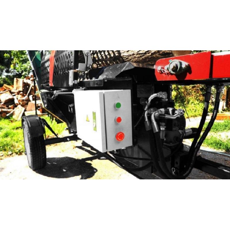- Zāģis un skaldīšanas mašīna ir aprīkota ar jaudīgu 7,5 kW 380 V elektromotoru.