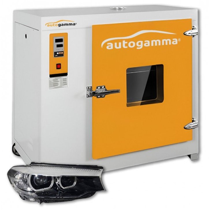 Profesionāla krāsns priekšējo lukturu līmes noņemšanai vai atjaunošanai. Izmantojot krāsni, tiek nodrošināta vienmērīga visas lampas uzsildīšana, kas ļauj ātri noņemt priekšējo lukturi un ievērojami vienkāršo un paātrina darbu. Krāsns ir paredzēta lampu sildīšanai ar cieto un mīksto līmi.
