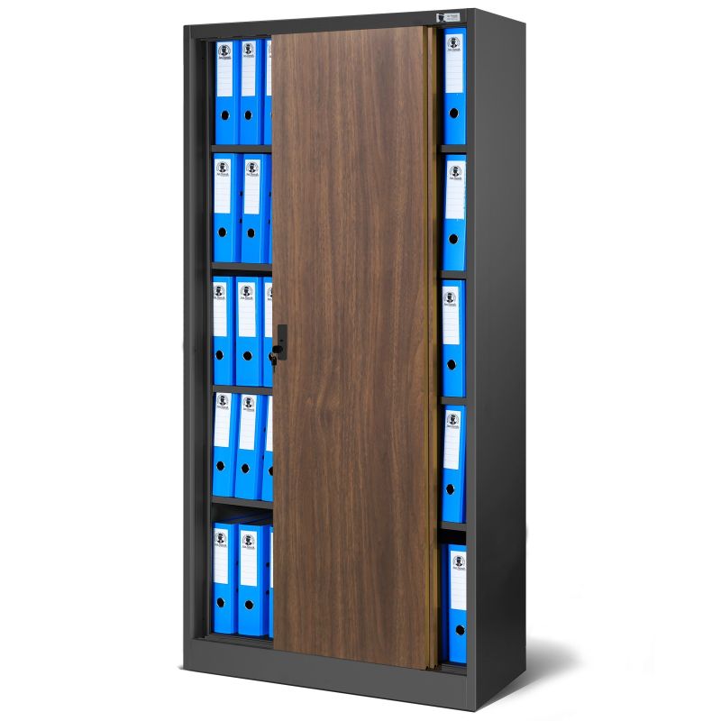 JAN NOWAK Eco Design metal office cabinet with sliding doors KUBA: anthracite/walnut