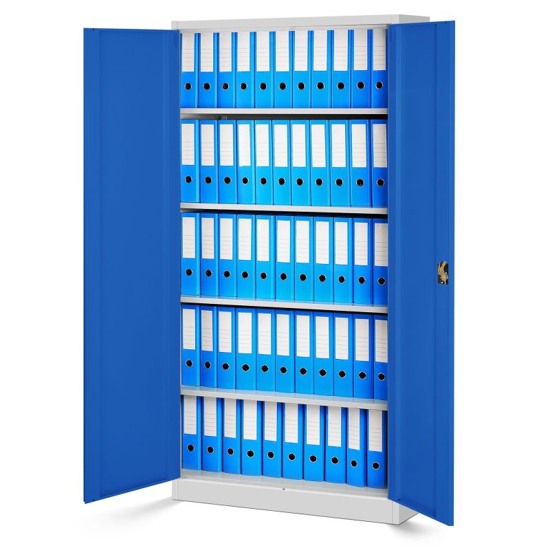JAN biroja skapis pievilcīgā pelēkzilā krāsā ir modelis visprasīgākajam lietotājam. Projektējot, mēs koncentrējāmies uz funkcionalitāti un uzticamību. Tas padara to ne tikai ērtu lietošanā, bet arī ārkārtīgi izturīgu. Turklāt regulējami plaukti ļauj pielāgot interjeru jūsu pašreizējām vajadzībām. Mūsu metāla skapim ir caurumi aizmugurējā un sānu sienās, kas ļauj to piestiprināt pie sienas. Tas palielinās ikdienas lietošanas drošību. Caurumi skapja augšpusē ļauj piestiprināt pagarinājumu. Metāla skapja aizmugure sastāv no divām daļām.