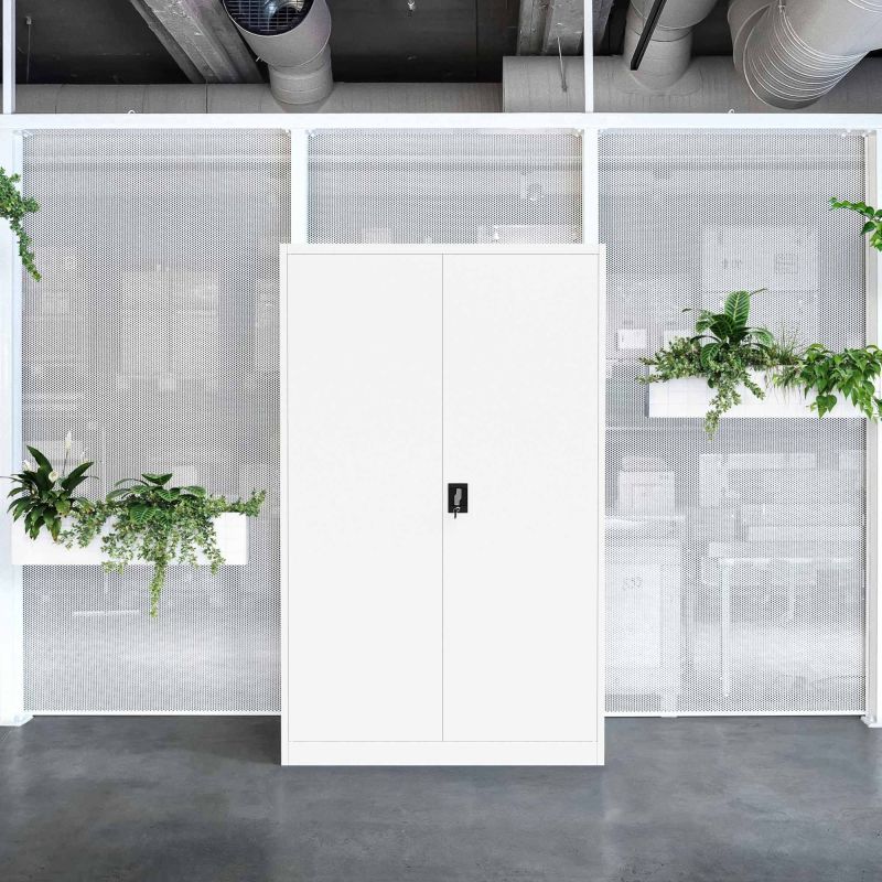 JAN II dokumentu skapis ir izgatavots ļoti estētiski – baltā krāsā tas lieliski iederēsies jebkurā vidē. Projektējot to, mēs darījām visu iespējamo, lai nodrošinātu, ka tas ir pēc iespējas izturīgāks un vienlaikus funkcionāls. Esam to aprīkojuši ar regulējamiem plauktiem, pateicoties kuriem varat pielāgot tā struktūru savām vajadzībām. Mūsu metāla skapim ir caurumi aizmugurējā un sānu sienās, kas ļauj to piestiprināt pie sienas. Tas palielinās ikdienas lietošanas drošību.