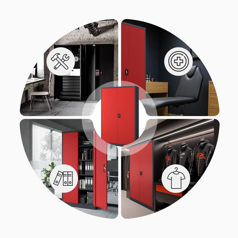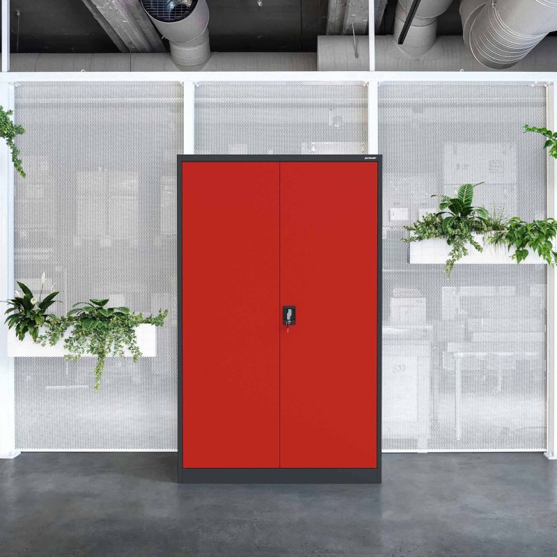 JAN NOWAK skapis, modelis JAN II – tērauds, dokumentiem, medicīniskam, darbnīcai, antracīta sarkanā krāsā