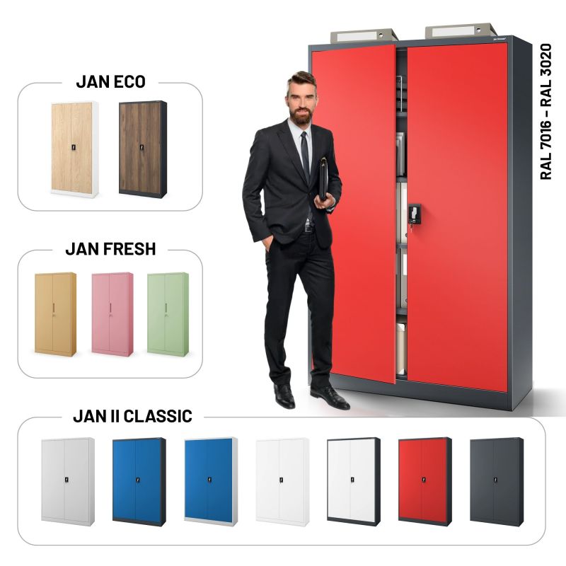 JAN II metāla slēgtais skapis ir modelis no JAN NOWAK kolekcijas. Jūs pārsteigs biroja mēbeļu maksimālā izsmalcinātība funkcionalitātes, dizaina, izturības un uzticamības ziņā. Jūs varat ērti uzglabāt ne tikai dokumentus, bet arī daudzus citus lielākus priekšmetus, piemēram, instrumentus vai medicīnisko aprīkojumu.