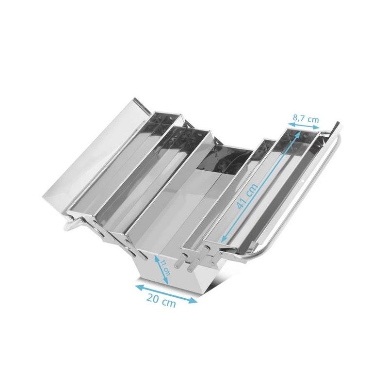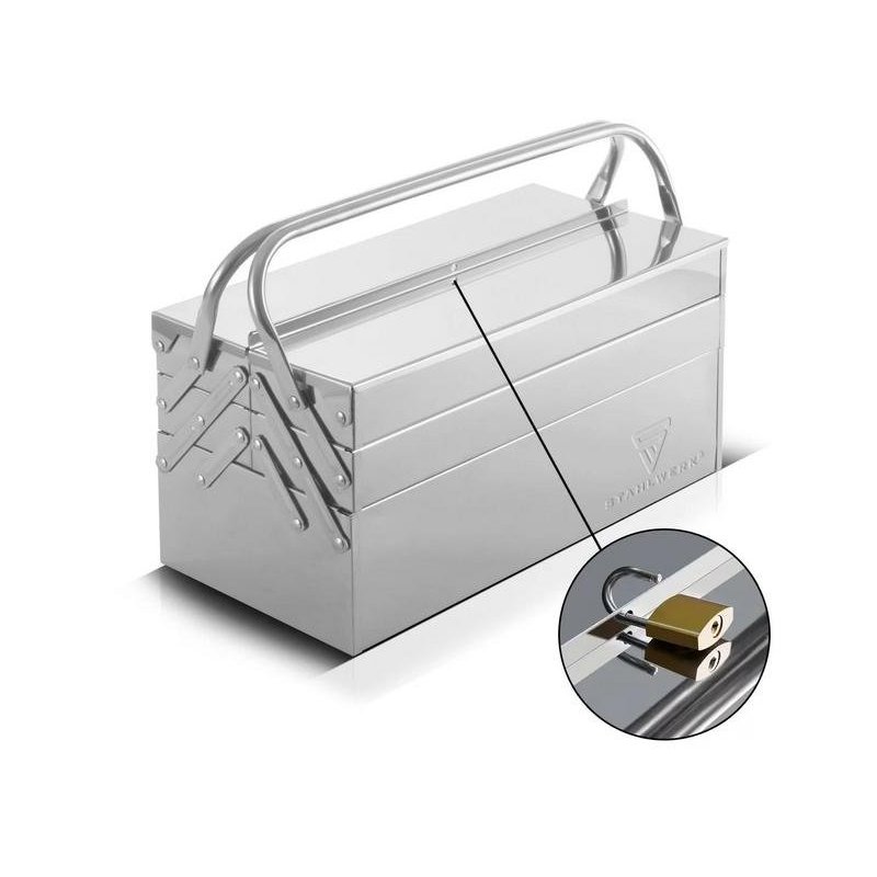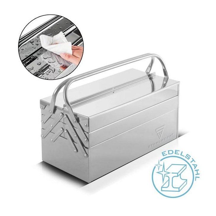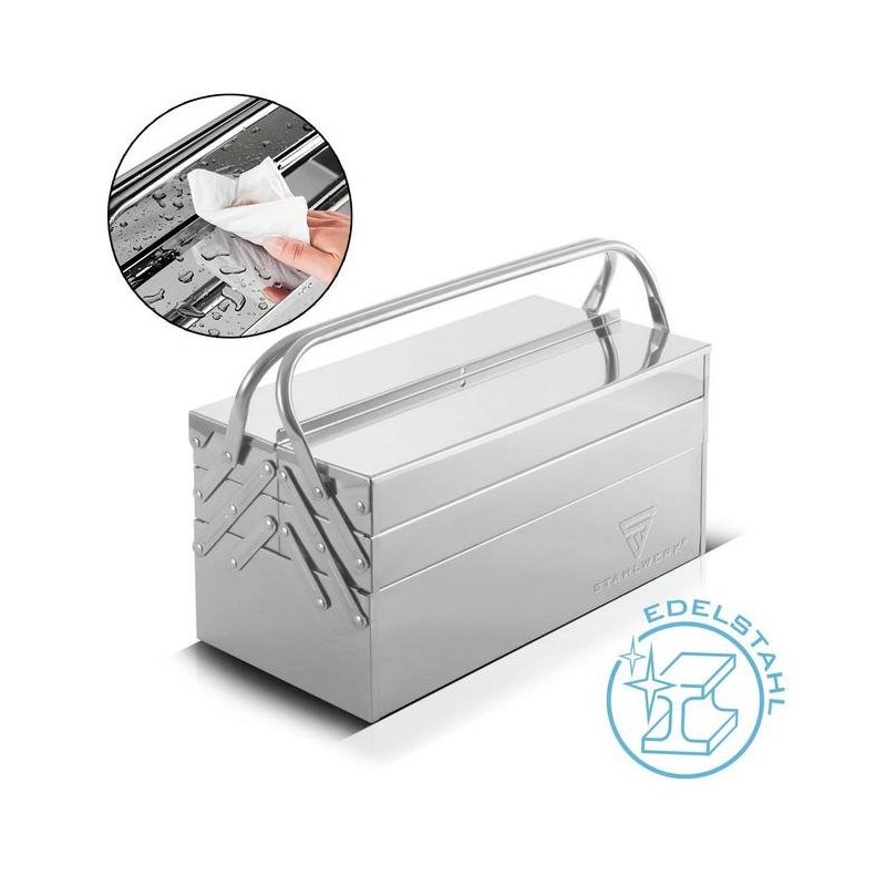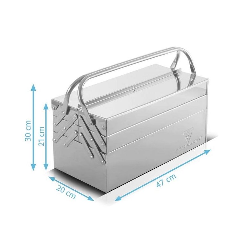 Ar savu augstas kvalitātes apdari nerūsējošā tērauda instrumentu kaste ir piemērota lietošanai rūpniecībā, tirdzniecībā, darbnīcās un “dari pats” vajadzībām, kā arī montāžas vietās.