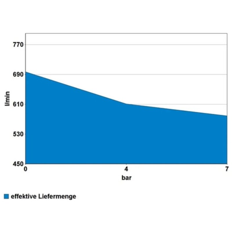 Efektīvais piegādes ātrums pie 7 bāriem: 579 l/min