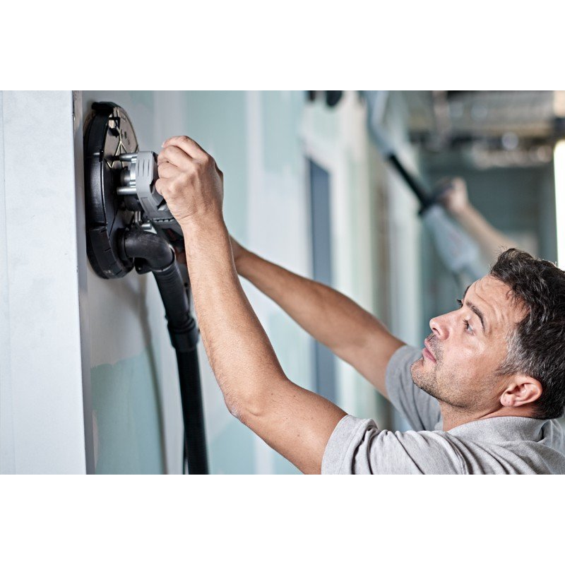 Radušies slīpēšanas putekļi ne tikai apdraud operatora veselību, bet arī samazina abrazīvā materiāla kalpošanas laiku. Tāpēc tie ir droši jānoņem. Slīpmašīna ir aprīkota ar 6 caurumu piedziņas disku ar suku gredzenu, kas efektīvi noblīvē nelīdzenas virsmas.