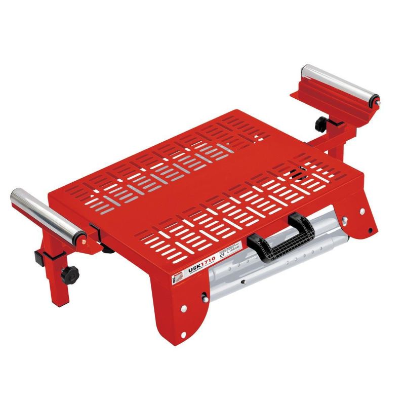 Uzstādiet savu šķērzāģi uz HOLZMANN USK1710. Ātri uzstādāms un ērti novietojams, lai ietaupītu vietu, tas nodrošina jūsu darbgaldam stabilu stendu ar sagatavju balstiem un padara apstrādājamo izstrādājumu apstrādi vieglāku un perfektāku.