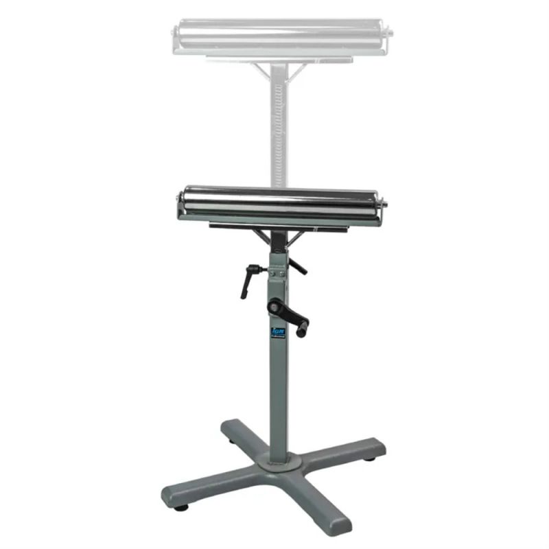 IGM rullīšu statīvs atšķiras no citiem ar rokturi, kas ļauj ērti regulēt augstumu. Pacēlājs darbojas, izmantojot zobrata un zobratiņa sistēmu, kas ļauj viegli un precīzi iestatīt augstumu. Statīvs ir ideāli piemērots, veicot izlīdzināšanu vai biezuma noteikšanu, jo tas ļauj ātri un viegli mainīt statīva augstumu attiecībā pret mašīnas iestatījumiem. Cits pielietojums varētu būt ar cilindrisko slīpmašīnu, kur drošs darba atbalsts novērš darba galu nobrāzumus. Dubultās bloķēšanas sviras neļauj statīvam noslīdēt no iepriekš iestatītā augstuma. Rullīša diametrs ir 55 mm, garums - 400 mm, un tas ir aprīkots ar lodīšu gultņiem, kas nodrošina vienmērīgu ritošo daļu. Četru kāju čuguna pamatnei ir ieskrūvējamas gumijas kājiņas, kas ļauj nedaudz pielāgot nelīdzenai grīdai. Rullīša augstums ir regulējams no 660 mm līdz 1060 mm.