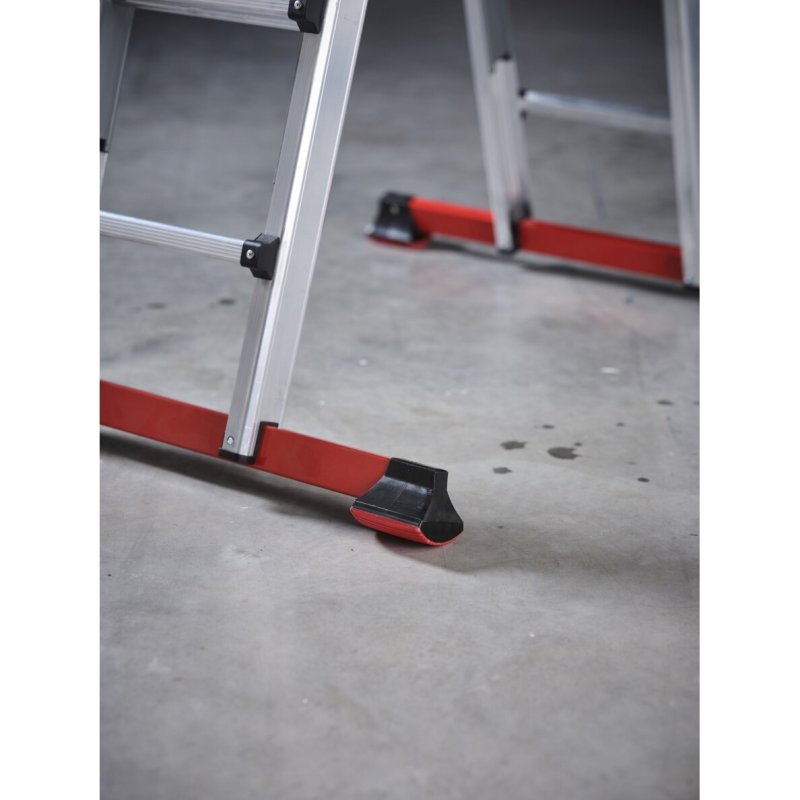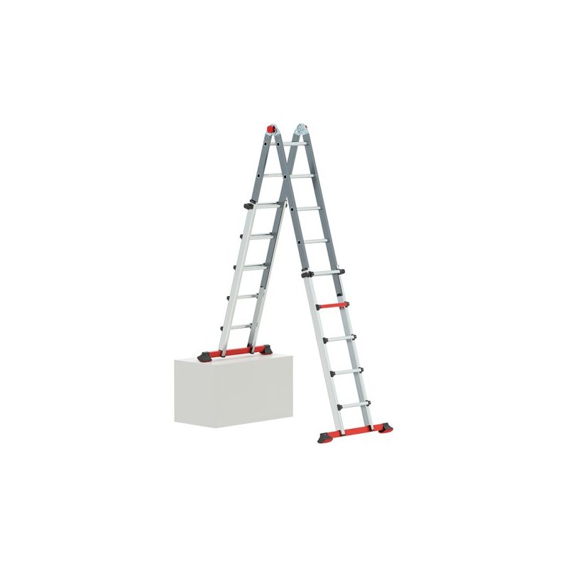 Varitrex Tele PRO ir teleskopiskas salokāmas kāpnes. Saliekamās kāpnes varat novietot gan A pozīcijā, gan kāpņu pozīcijā. Turklāt kāpnes ir teleskopiski regulējamas, tāpēc varat tās ērti izmantot uz nelīdzenām virsmām, piemēram, kāpnēm. Ar Varitrex Tele PRO jūs varat veikt jebkuru darbu.