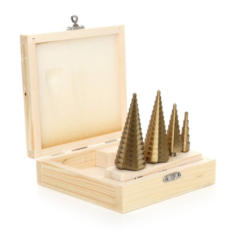 Step cone drill bit set 4pcs 4-32 mm in case