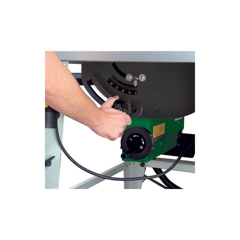 Precīza zāģa diska pagriešana, izmantojot rokas riteni ar skalu
