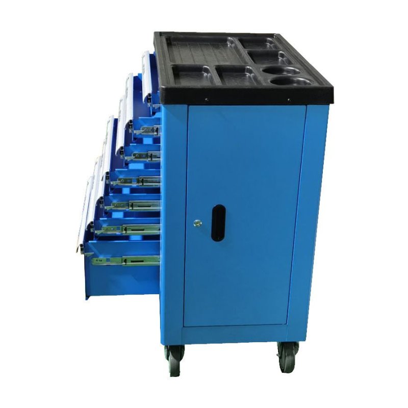 Instrumentu ratiņi ar pastiprinātām sienām, profiliem un septiņām darbnīcas atvilktnēm.