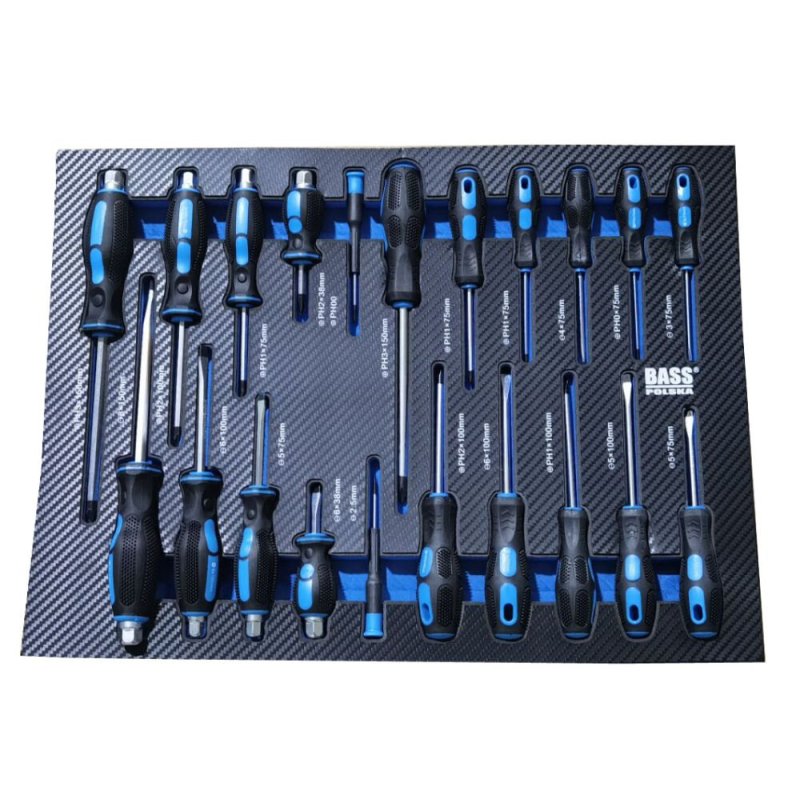 Profesionāls instrumentu skapis ar Bass Polska aprīkojumu, kas paredzēts auto un servisa darbnīcām.