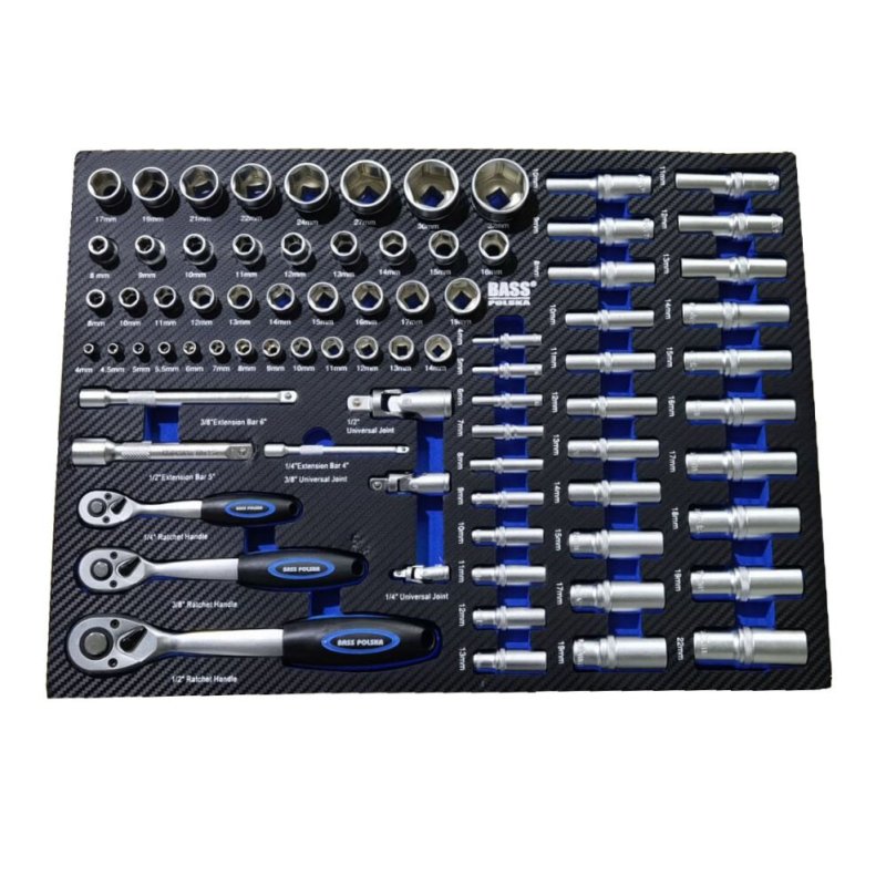 1. 80 daļu uzgaļu komplekts 1/4", 3/8" un 1/2" uzgaļiem