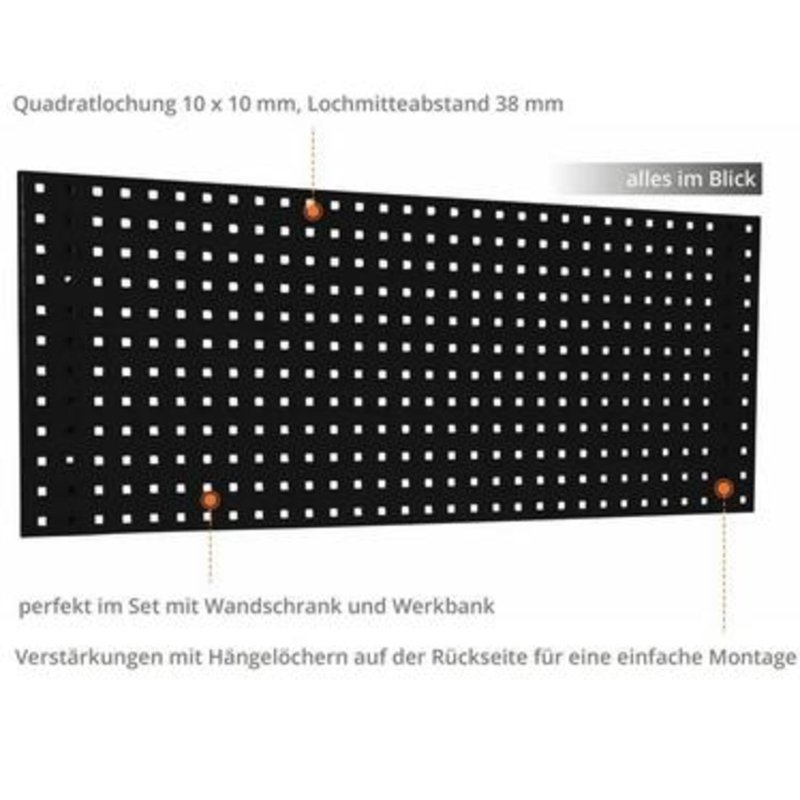Profesionāla kvalitāte mūžīgā dizainā – šī ir mūsu jaunā klasikas versija, kas sevi ir pierādījusi gadu desmitiem. Ar savu izturīgo tērauda konstrukciju šī perforētā dēlīša konstrukcija piedāvā plašu vietu darba materiālu un instrumentu glītai sakārtošanai.