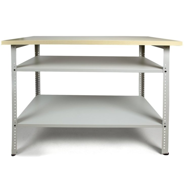 Darbagaldam ir regulējamas augstuma kājas, lai jebkuru nelīdzenumu varētu viegli kompensēt un darbagalds paliktu stabils. Divi starpposma plaukti ne tikai nodrošina darbagalda stabilitāti, bet arī piedāvā daudz uzglabāšanas vietas, ko var efektīvi izmantot. Turklāt plauktus var individuāli regulēt un uzstādīt iepriekš urbtajos caurumos pēc vēlēšanās. Atvērtais dizains ļauj nekavējoties un viegli izņemt uzglabātos instrumentus. Darbagalds tiek piegādāts izjaukts. DIY entuziastam nebūs grūtību salikt šo darbagaldu. Montāžai jāparedz aptuveni 15–20 minūtes un soli pa solim jāievēro instrukcijas. Ir iekļauti visi nepieciešamie piederumi un montāžas instrukcijas, kā arī instrumenti. Šim darbagaldam piedāvājam arī atbilstošus instrumentu skapjus un perforētas plāksnes. Darbagalda izmēri ir 120 (platums) x 95 (augstums) x 60 (dziļums) cm, un tas sver aptuveni 28,5 kg.