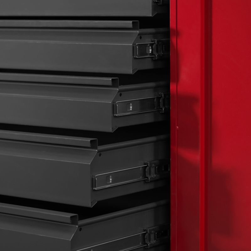 Cieta konstrukcija no bieza metāla lokšņu un augstas kvalitātes slēdzama aizdare nodrošina, ka skapis lieliski aizsargā tajā esošos instrumentus un priekšmetus.