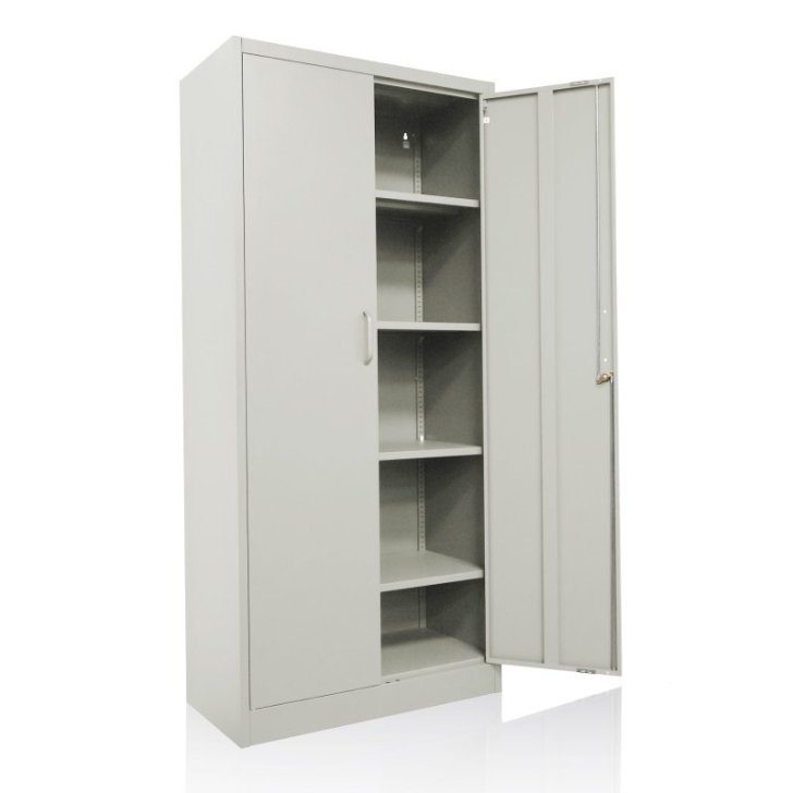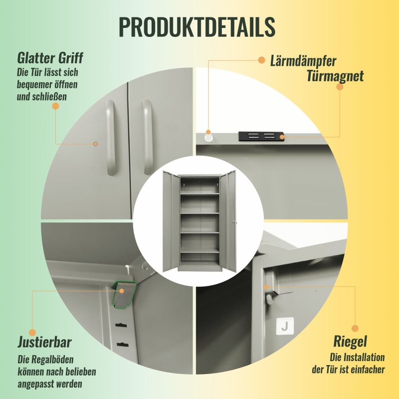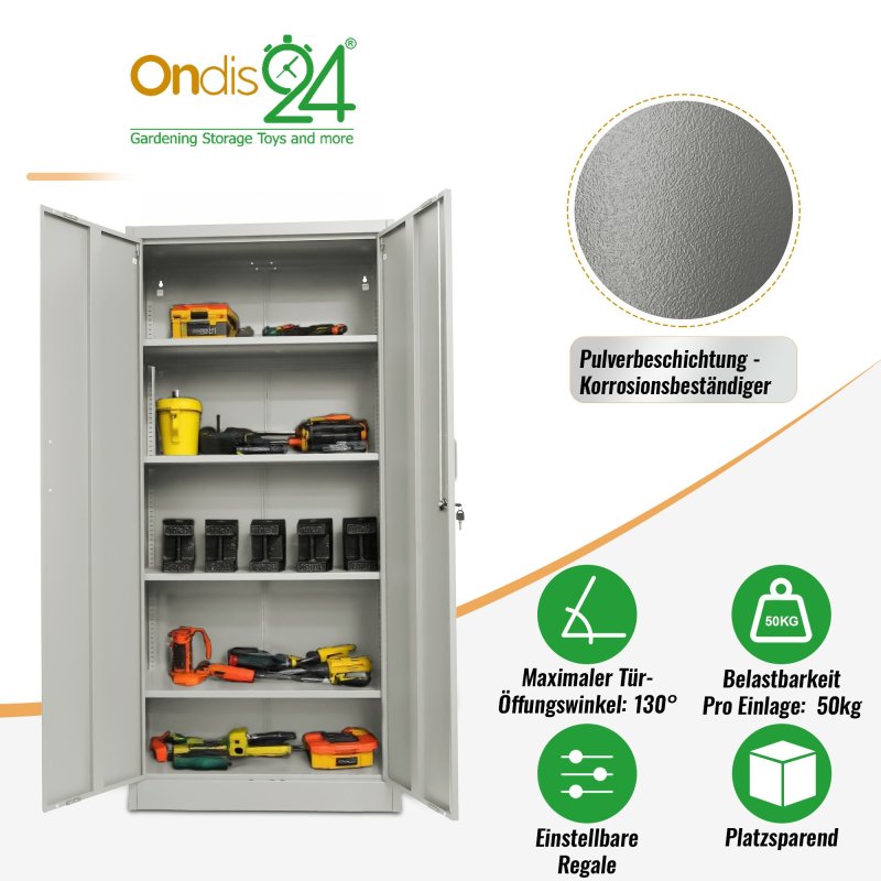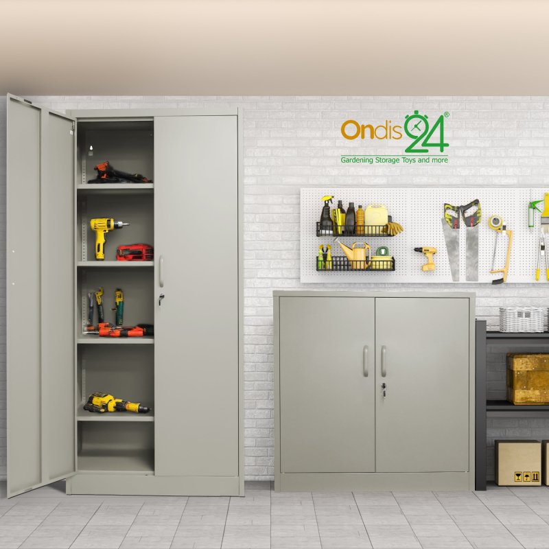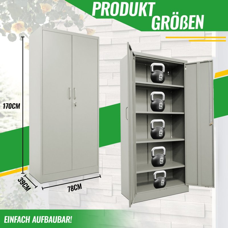 Šo metāla skapi var salikt vienā mirklī, pateicoties instrukcijām, un tas ir praktisks un īpaši izturīgs partneris jūsu birojam vai darbnīcai. Šī tērauda skapja izmēri ir aptuveni 90 x 38 x 180 (H) cm, un tam ir četri metāla plaukti, kas ātri un viegli piestiprināmi pie sānu sienām. Plauktiem ir regulējams augstums un katrs var noturēt līdz 50 kg. Tas nozīmē, ka varat piestiprināt plauktus tādā attālumā, lai failus varētu glabāt vairākās rindās vienu virs otra. Tas atbrīvo ceļu arhīvam. Abas skapja durvis ir viegli aizslēdzamas (2 atslēgas iekļautas komplektā). Šis dokumentu skapis ir ideāls papildinājums jūsu birojam. Tas joprojām ir pietiekami viegls, lai vajadzības gadījumā to varētu pārvietot vai nēsāt divi cilvēki. Metāla skapis lieliski noderēs arī darbnīcā vai dārzā. Metāla plaukti ir ļoti stabili. Šeit ērti un droši varat uzglabāt smagus, lielus instrumentus. Ja skapi uzstādāt noliktavās vai rūpniecības uzņēmumos, (pus)gatavās detaļas vai mašīnas šeit atradīs izturīgu pagaidu uzglabāšanas vietu. Tāpēc šis instrumentu skapis ir ļoti daudzpusīgs. Metāls ir krāsots pelēkā krāsā un netīrumus atgrūdošs. Pateicoties gludajai virsmai, skapi ir arī viegli noslaucīt un tīrīt. Vai jūs ir iespaidojis šis praktiskais universālais skapis? Pēc tam nekavējoties pasūtiet to tiešsaistē šeit no mums. Pēc tam mēs nekavējoties nosūtīsim jums metāla skapi. Atbilstošais skapītis ir pieejams arī mūsu interneta veikalā. Visi izmēri ir aptuveni un attiecas uz preces maksimālajiem ārējiem izmēriem. Sūtījuma svars arī ir aptuvens. Ja jums nepieciešama precīzāka informācija, lūdzu, sazinieties ar mūsu atbalsta komandu.
