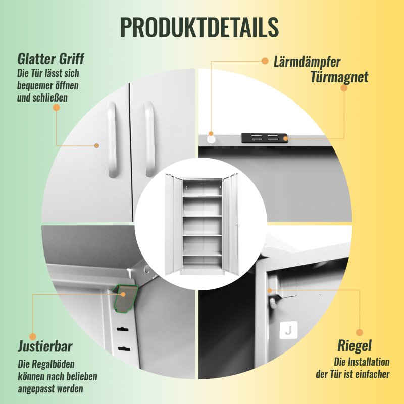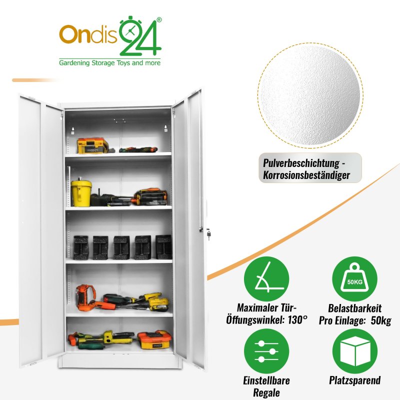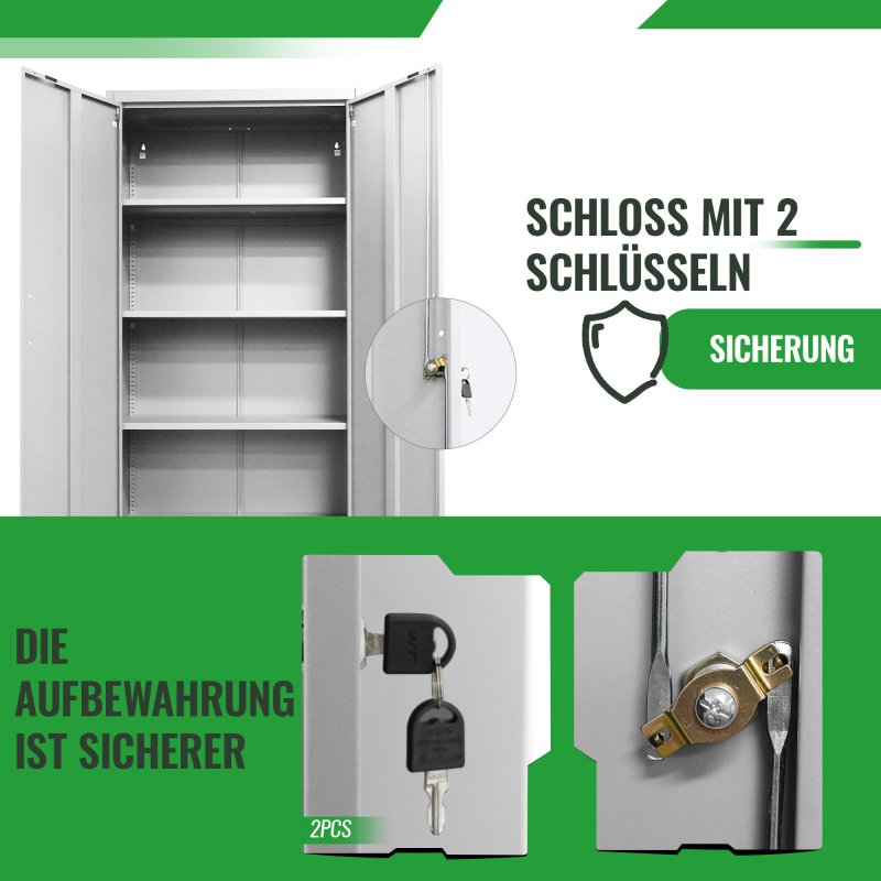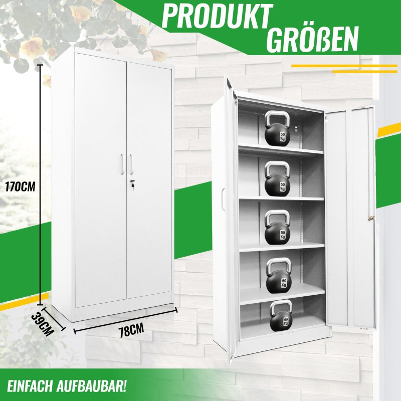 Šo metāla skapi var salikt vienā mirklī, pateicoties instrukcijām, un tas ir praktisks un īpaši izturīgs partneris jūsu birojam vai darbnīcai. Šī tērauda skapja izmēri ir aptuveni 78 x 39 x 170 (H) cm, un tam ir četri metāla plaukti, kas ātri un viegli piestiprināmi pie sānu sienām. Plauktiem ir regulējams augstums un katrs var noturēt līdz 50 kg. Tas nozīmē, ka varat piestiprināt plauktus tādā attālumā, lai failus varētu glabāt vairākās rindās vienu virs otra. Tas atbrīvo ceļu arhīvam. Abas skapja durvis ir viegli aizslēdzamas (2 atslēgas iekļautas komplektā). Šis dokumentu skapis ir ideāls papildinājums jūsu birojam. Tas joprojām ir pietiekami viegls, lai vajadzības gadījumā to varētu pārvietot vai nēsāt divi cilvēki. Metāla skapis lieliski noderēs arī darbnīcā vai dārzā. Metāla plaukti ir ļoti stabili. Šeit ērti un droši varat uzglabāt smagus, lielus instrumentus. Ja skapi uzstādāt noliktavās vai rūpniecības uzņēmumos, (pus)gatavās detaļas vai mašīnas šeit atradīs izturīgu pagaidu uzglabāšanas vietu. Tāpēc šis instrumentu skapis ir ļoti daudzpusīgs. Metāls ir krāsots pelēkā krāsā un netīrumus atgrūdošs. Pateicoties gludajai virsmai, skapi ir arī viegli noslaucīt un tīrīt. Vai jūs ir iespaidojis šis praktiskais universālais skapis? Pēc tam nekavējoties pasūtiet to tiešsaistē šeit no mums. Pēc tam mēs nekavējoties nosūtīsim jums metāla skapi. Atbilstošais skapītis ir pieejams arī mūsu interneta veikalā. Visi izmēri ir aptuveni un attiecas uz preces maksimālajiem ārējiem izmēriem. Sūtījuma svars arī ir aptuvens. Ja jums nepieciešama precīzāka informācija, lūdzu, sazinieties ar mūsu atbalsta komandu.