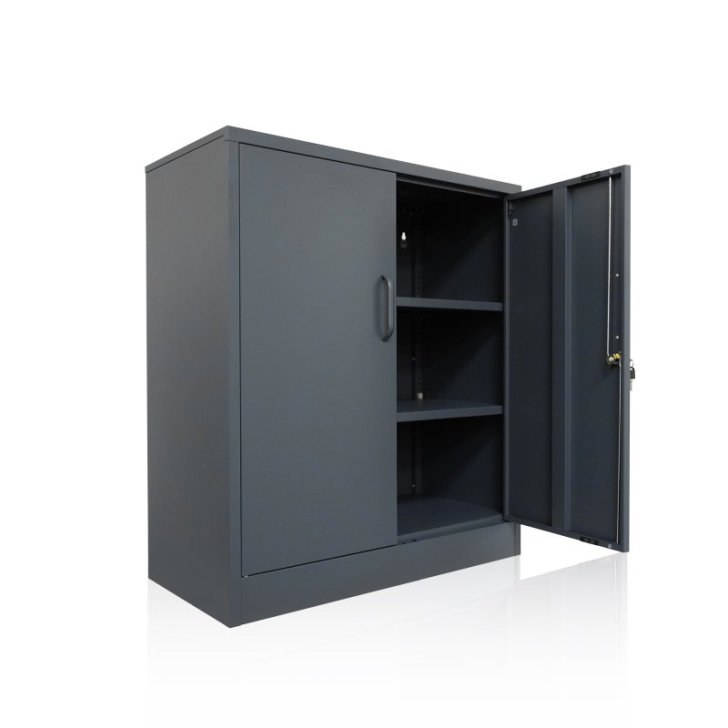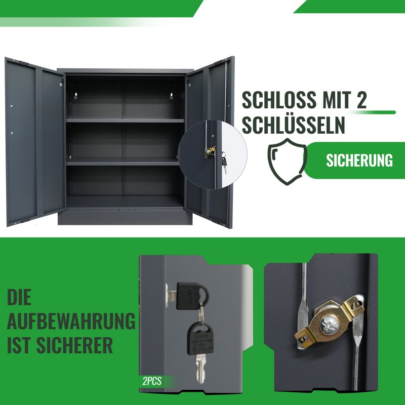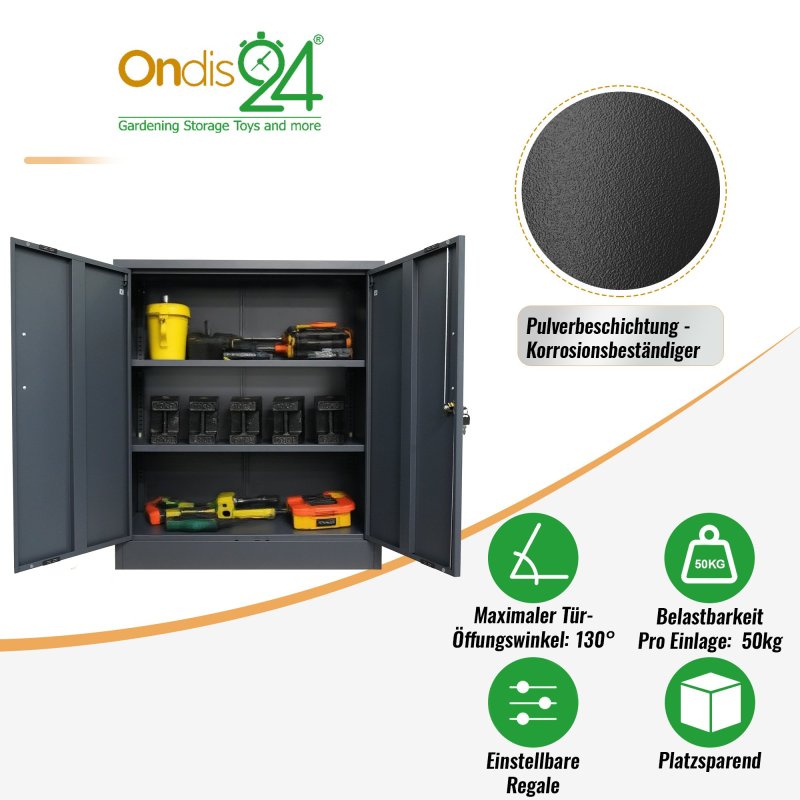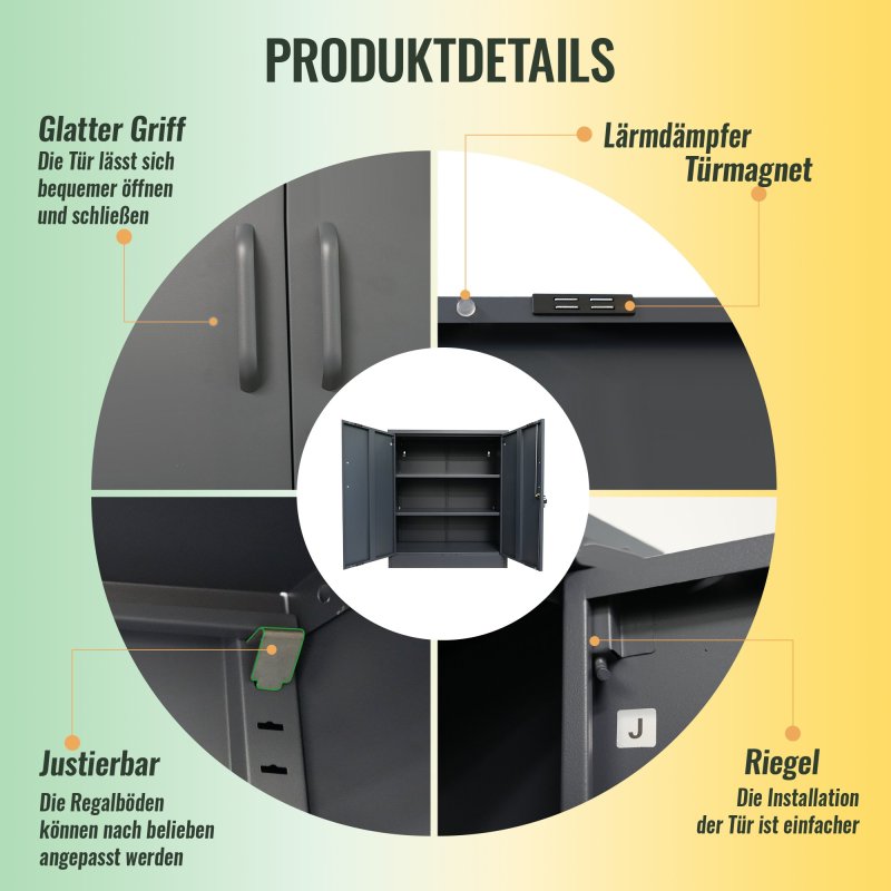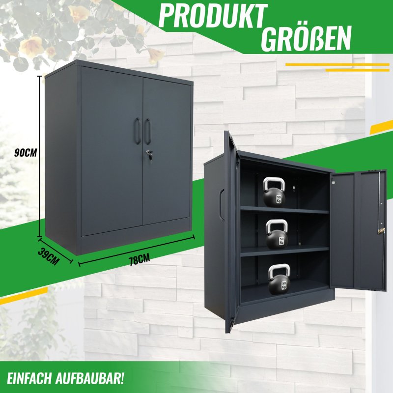 Šo metāla skapi var ātri salikt, pateicoties instrukcijām, un tas ir praktisks un īpaši izturīgs partneris jūsu birojam vai darbnīcai. Šī tērauda skapja izmēri ir aptuveni 78 x 39 x 90 (H) cm, un tam ir divi metāla plaukti, kas ātri un viegli piestiprināmi pie sānu sienām. Plauktiem ir regulējams augstums un katrs var noturēt līdz 50 kg. Abas skapja durvis ir viegli aizslēdzamas (2 atslēgas iekļautas komplektā). Šis dokumentu skapis ir ideāls papildinājums jūsu birojam. Tas joprojām ir pietiekami viegls, lai vajadzības gadījumā to varētu pārvietot vai nēsāt divi cilvēki. Metāla skapis var lieliski noderēt arī darbnīcā vai dārzā. Metāla plaukti ir ļoti stabili. Šeit ērti un droši varat uzglabāt smagus, lielus instrumentus. Ja skapi uzstādāt noliktavā vai rūpnieciskajā uzņēmumā, (pus)gatavās detaļas vai mašīnas šeit atradīs stabilu pagaidu uzglabāšanas vietu. Tāpēc šis instrumentu skapis ir ļoti daudzpusīgs. Metāls ir krāsots pelēkā krāsā un izturīgs pret netīrumiem. Pateicoties gludajai virsmai, skapi ir arī viegli noslaucīt un tīrīt. Ja jūs pārsteidza šis praktiskais, universālais skapis, pasūtiet to tiešsaistē jau tūlīt. Pēc tam mēs nekavējoties nosūtīsim jums metāla skapi. Atbilstošais skapītis ir pieejams arī mūsu interneta veikalā. Visi izmēri ir aptuveni un attiecas uz preces maksimālajiem ārējiem izmēriem. Sūtījuma svars arī ir aptuvens. Ja jums nepieciešama precīzāka informācija, lūdzu, sazinieties ar mūsu atbalsta komandu.