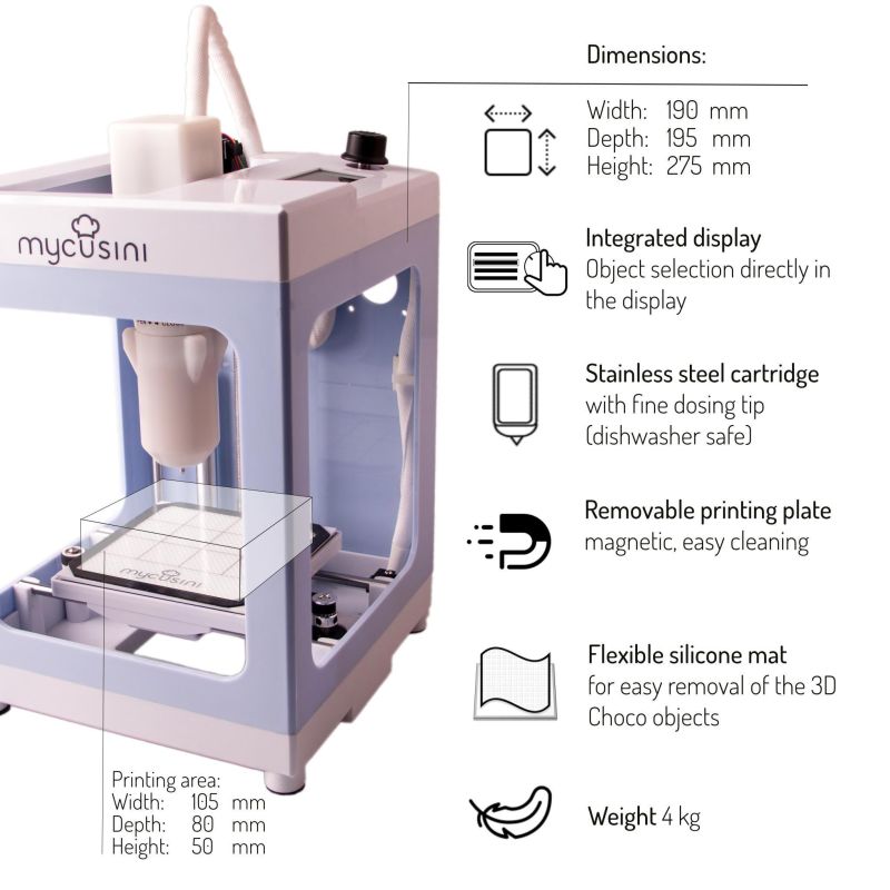 Ērti lietojams 3D šokolādes printeris izmantošanai mājas virtuvē.