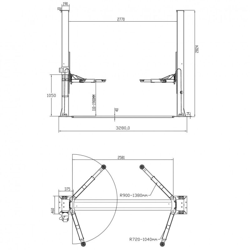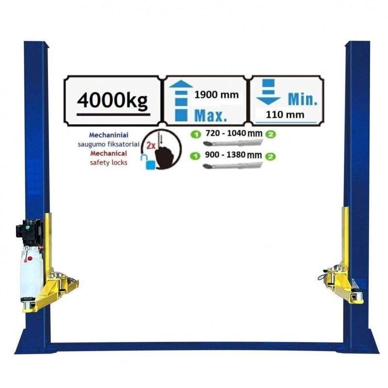 | Pacelšanas augstums (+ paliktņu pagarinājums) | 1900 mm |
