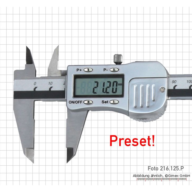 216.127.P izgatavots no nerūsējošā tērauda, rūdīts - 4 virzienu mērījumiem - 3 V mērīšanas sistēma - ar lielu LCD displeju - ieslēgšana/izslēgšana, mm un collu pārveidošana - nulles iestatījums jebkurā pozīcijā - ar iepriekš iestatītu - gadījumā