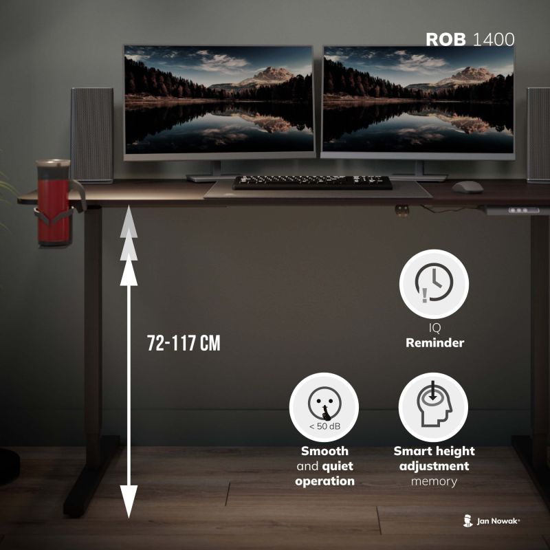 Iepazīstieties ar mūsu Smart Rob 1400 Electric Desk, kas palīdz veikt veselīgas izmaiņas jūsu darba veidā. Fakts, ka galdu var pielāgot optimālajam sēdēšanas un stāvošā darba augstumam, jau ir kļuvis par standartu. Robs iet vienu soli tālāk!