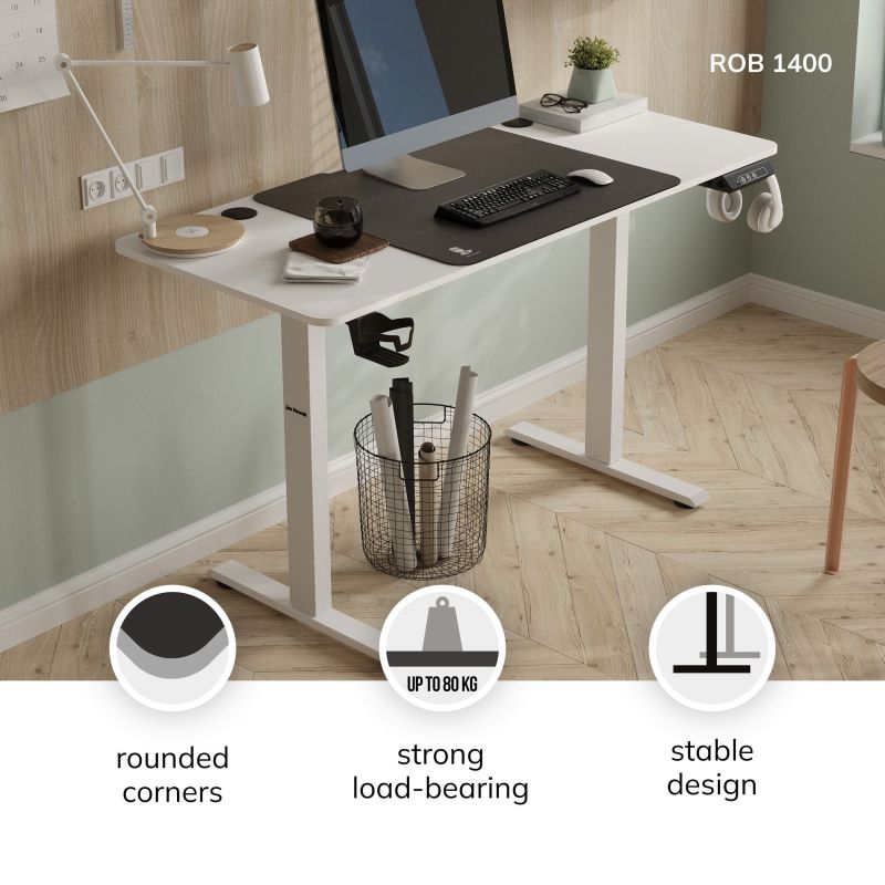 Darbs vai spēlēšana datorā nav jānozīmē sēdēt stundām ilgi. ROB 1400 regulējams galds ļaus jums ieviest vairāk kustību un tādējādi atbrīvoties no muguras sāpēm.