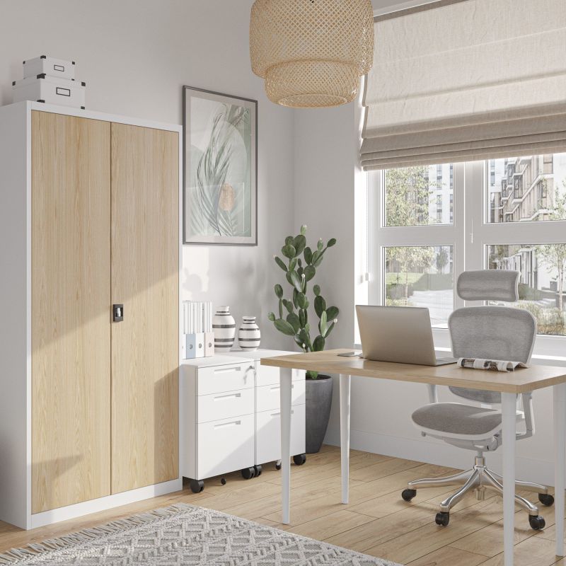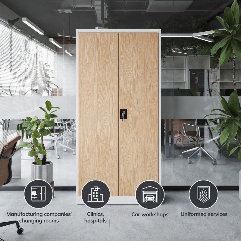 Mūsu biroja kabinets ir ne tikai praktisks, bet arī stilīgs aprīkojums. Īpaša krāsa, kas ir ļoti izturīga pret nodilumu, atgādina klasisko Sonomas ozolu. Vides aprūpe ir viena no mūsu prioritātēm, tāpēc Jan Nowak skapīši tiek izgatavoti tikai no metāla. Eco Design ir sērija, kas apvieno koka eleganci ar tērauda loksnes stiprību.