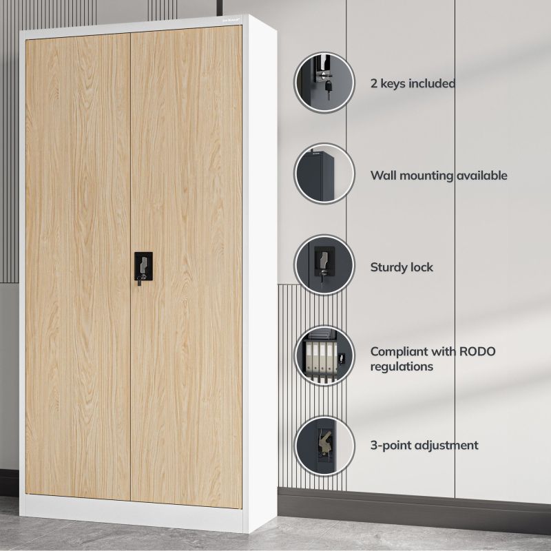 3 punktu pieskrūvēta slēdzene ar divām taustiņiem bija lieliski aizsargāta saglabātais saturs. Mūsu biroja kabinets ļauj uzglabāt dokumentus saskaņā ar piemērojamajiem GDPR noteikumiem.